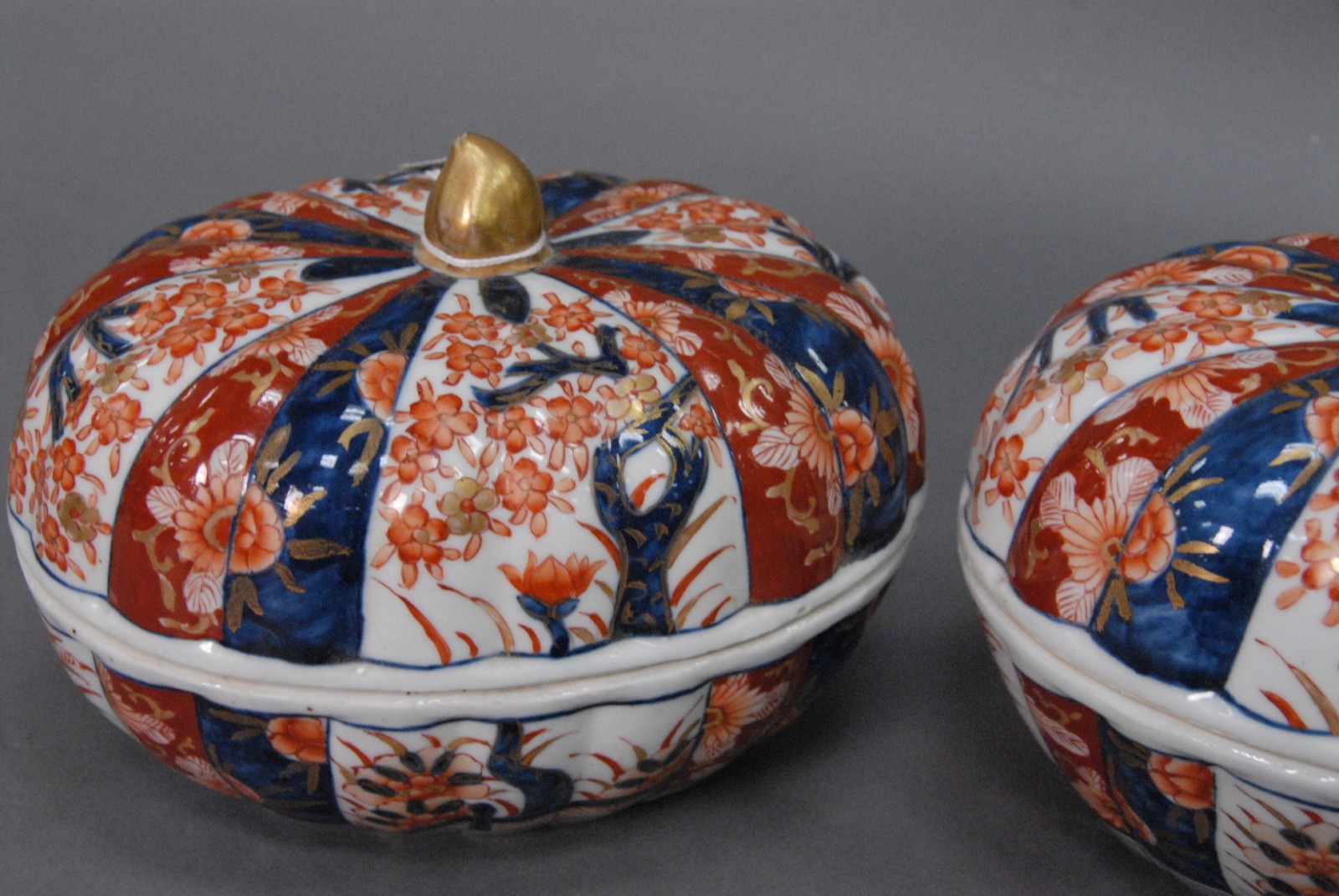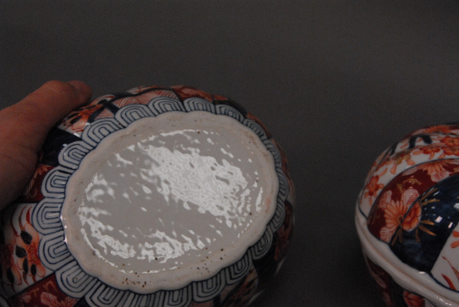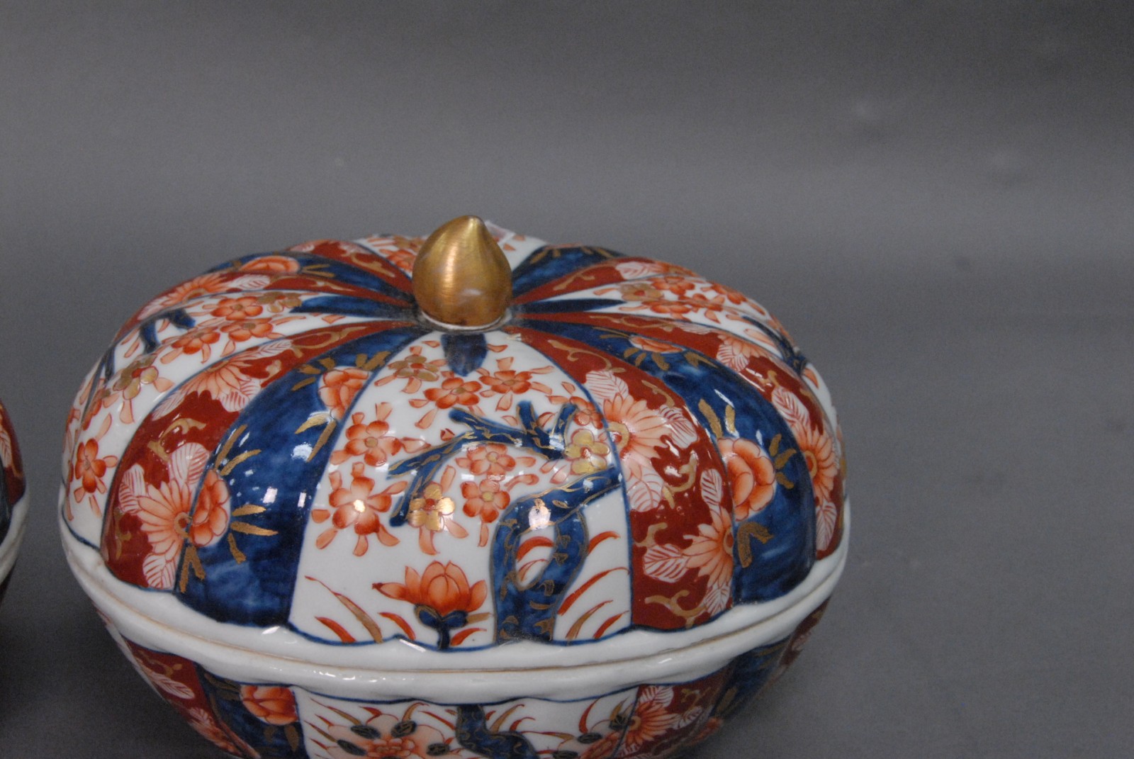 Lot 458: Pair of Japanese Imari covered oval bowls 20th