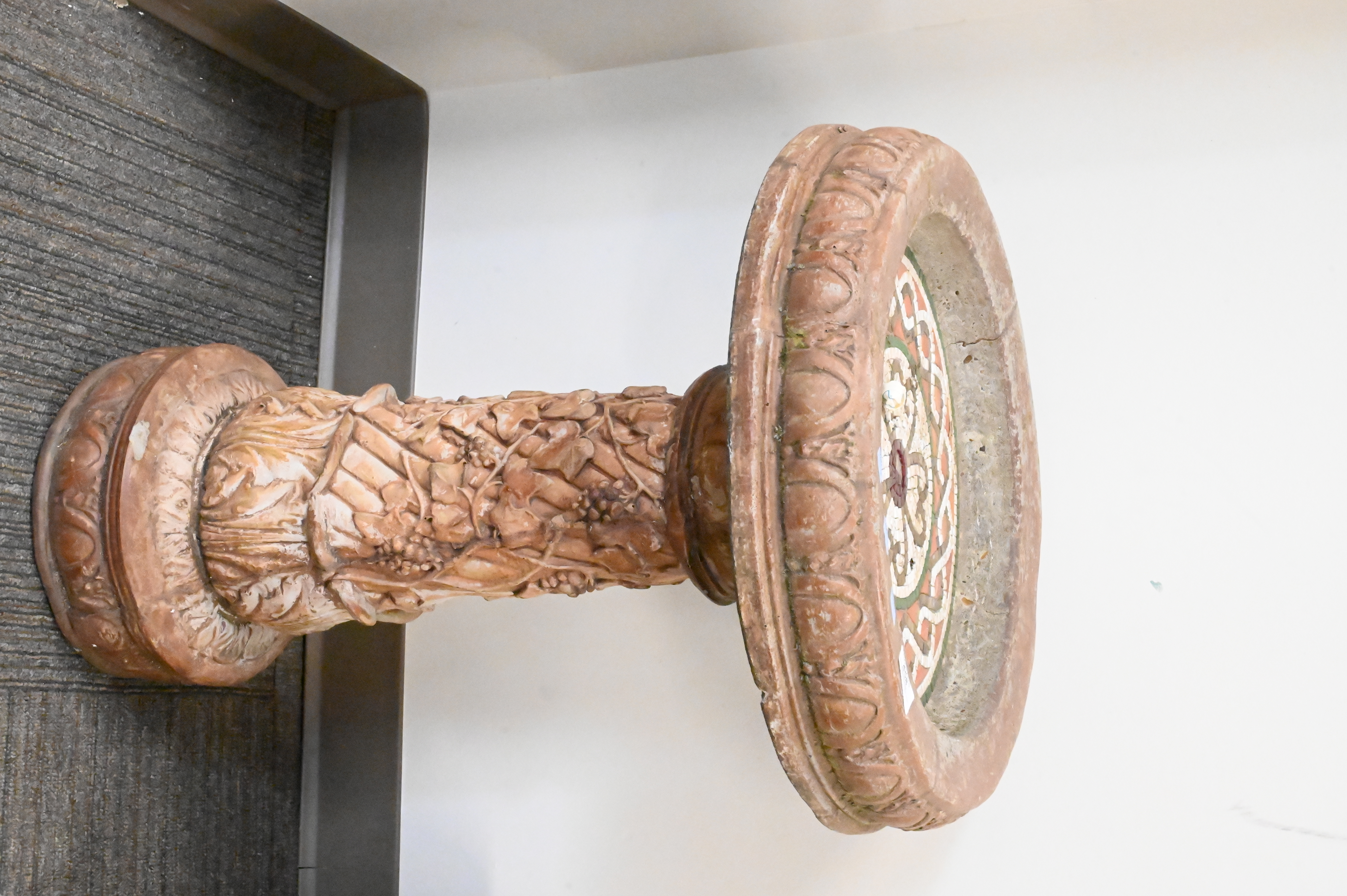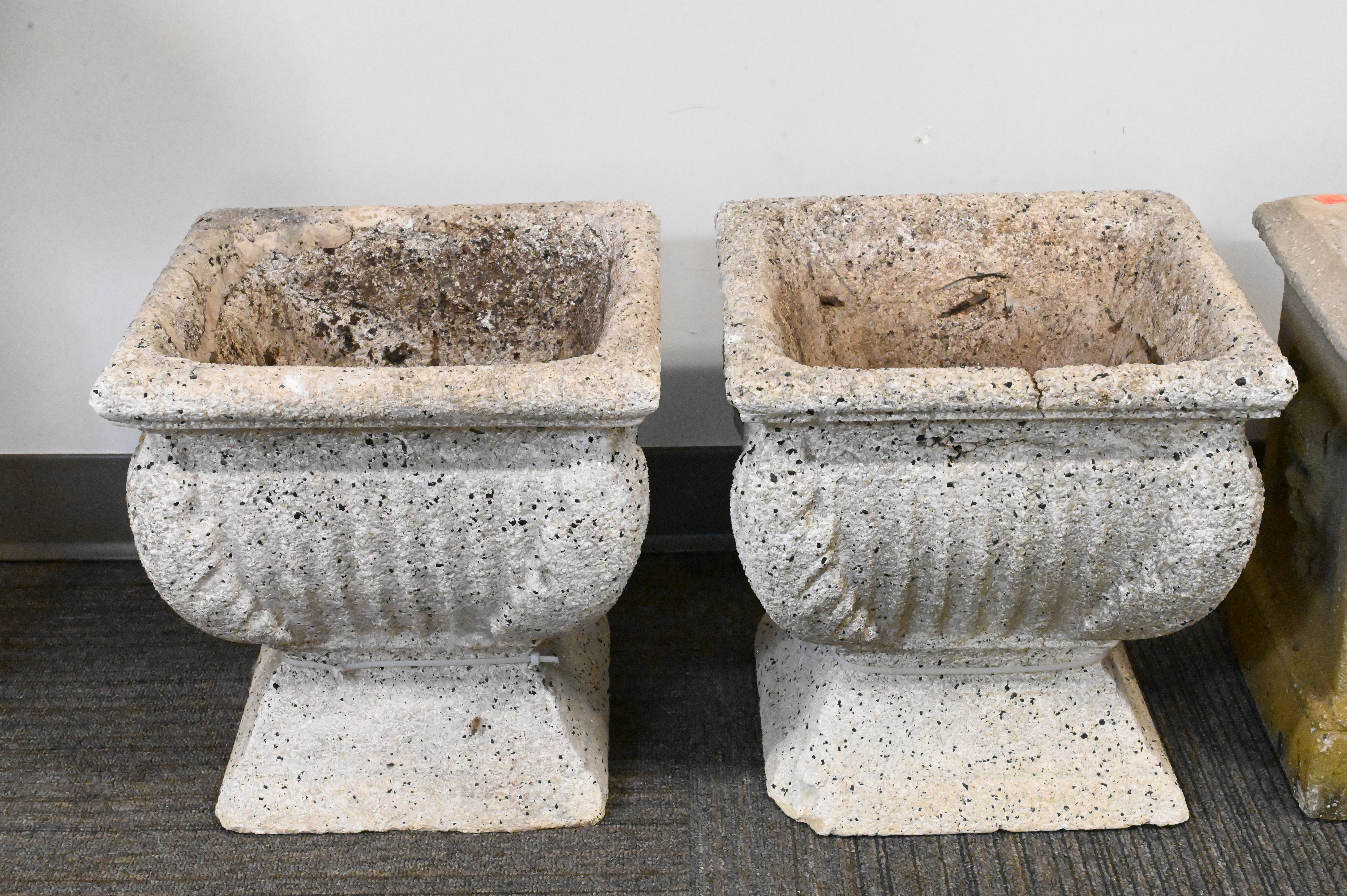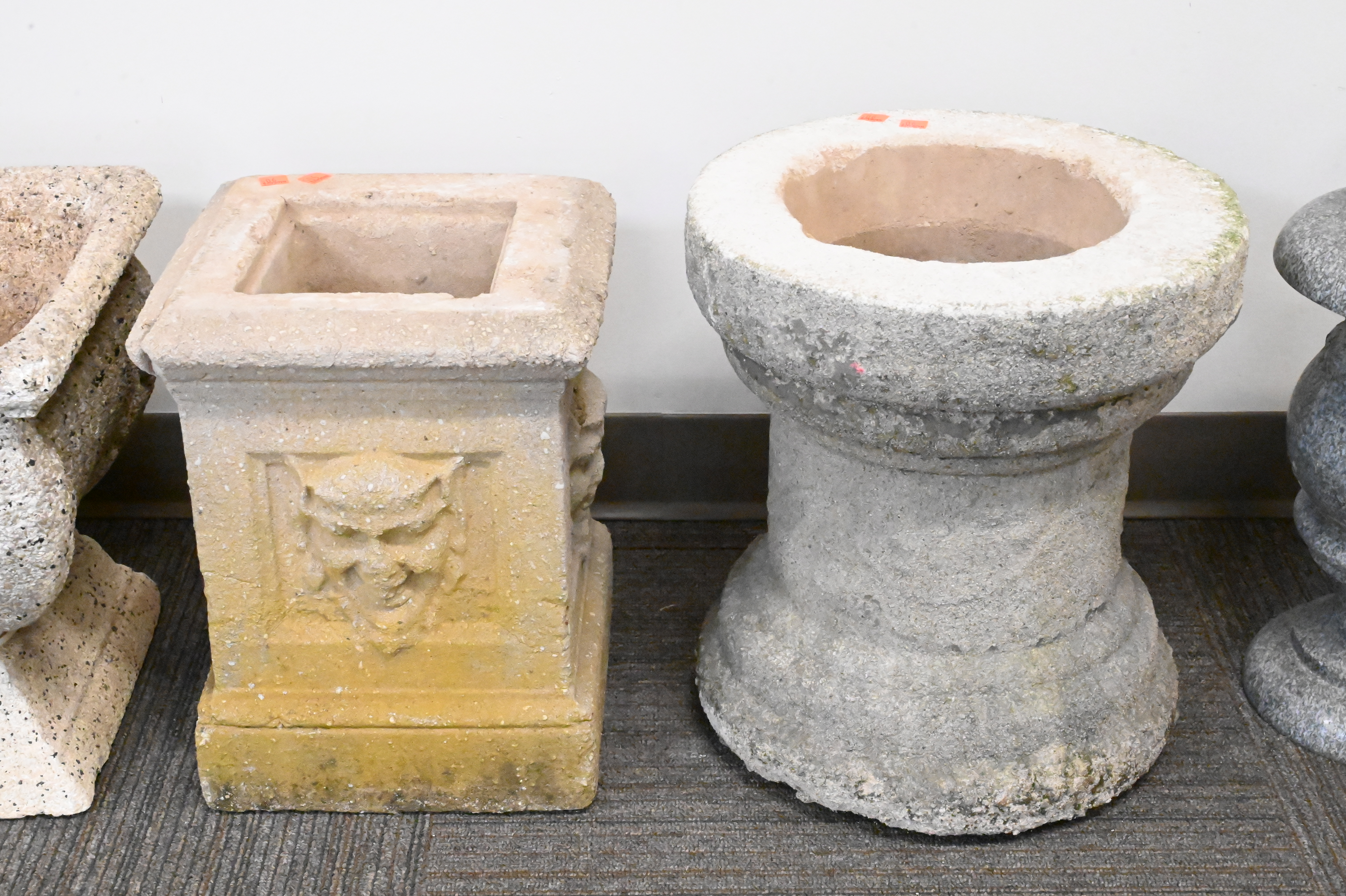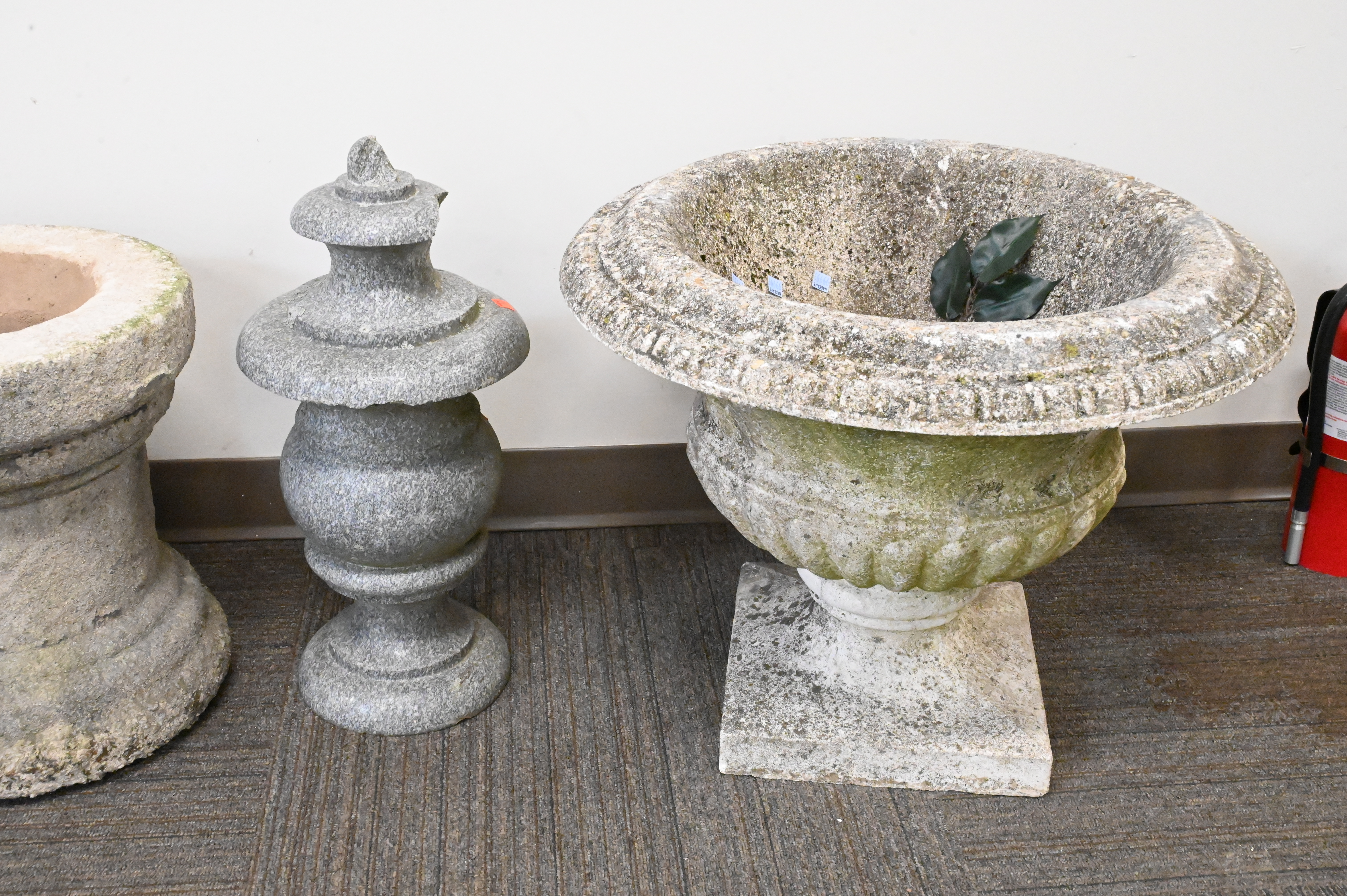 to include mosaic bird feeder, pair of cast stone planters, square planter with portrait busts, large urn form planter etc…