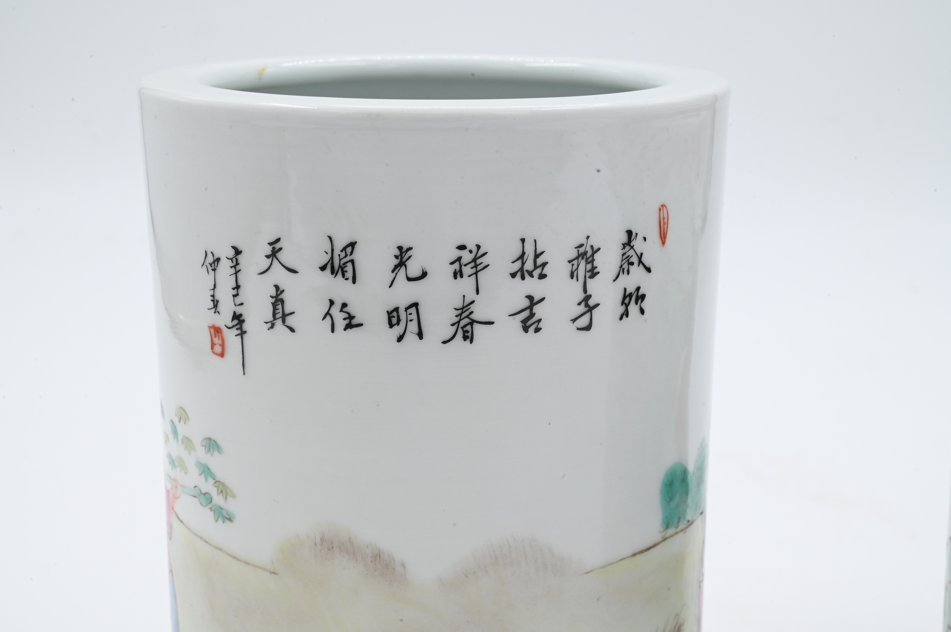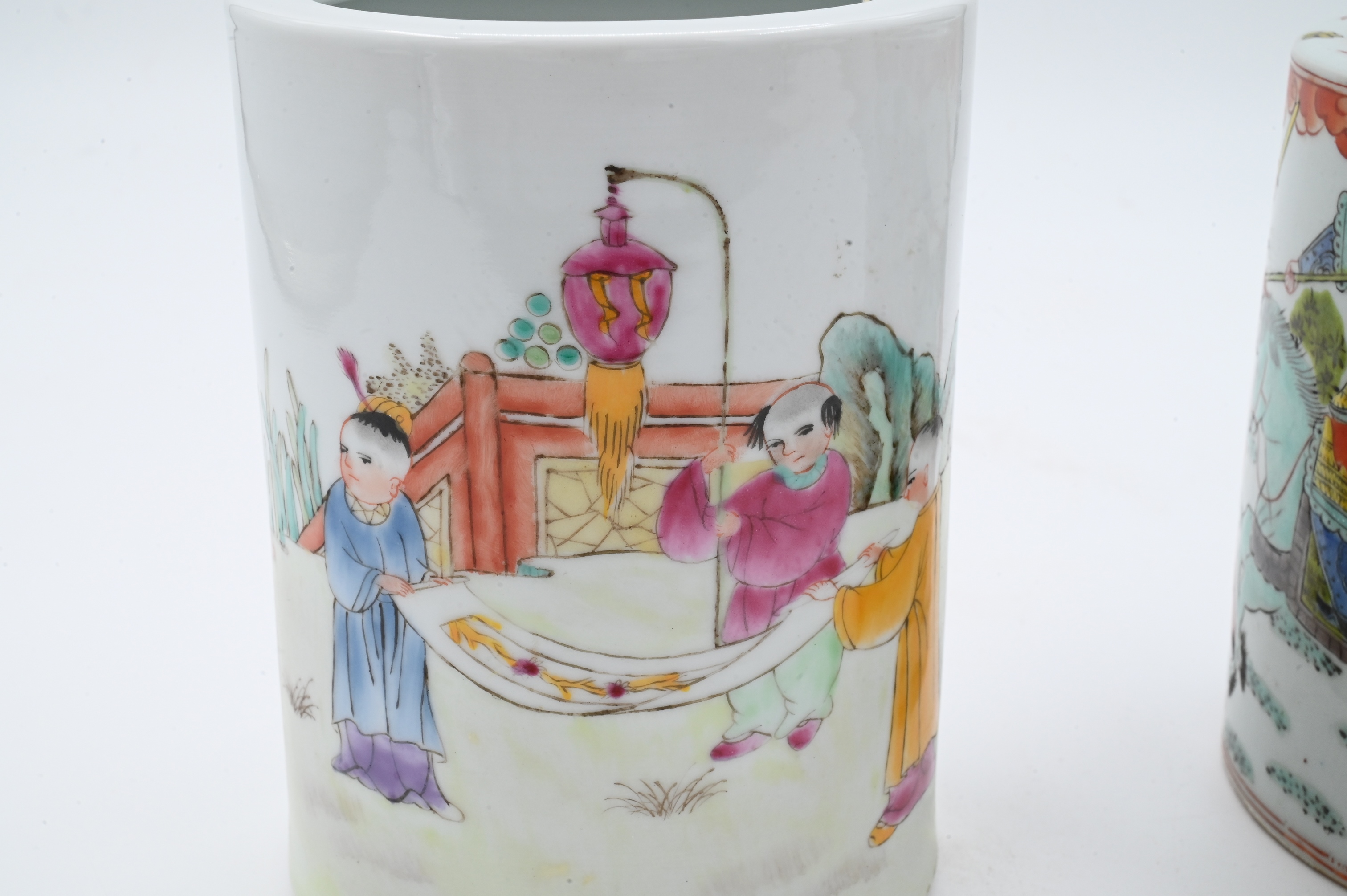 Lot 458: Two Chinese Porcelain Brush Pots