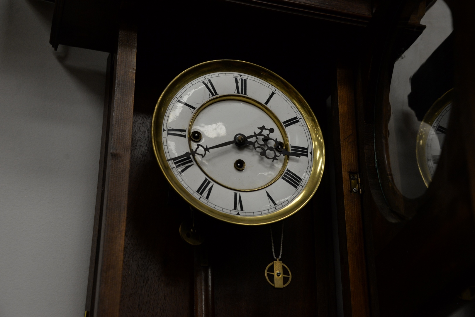 walnut case with enameled face