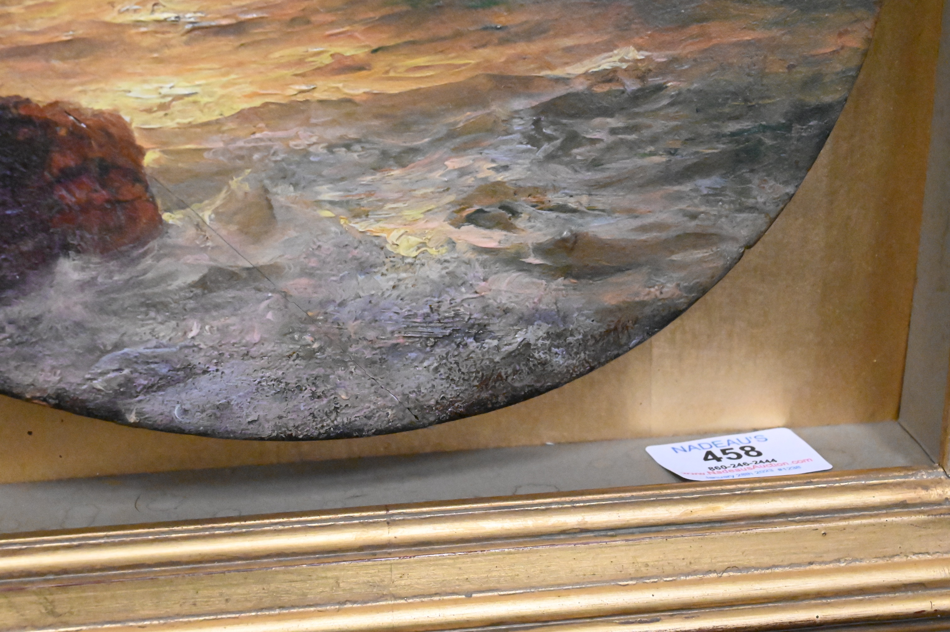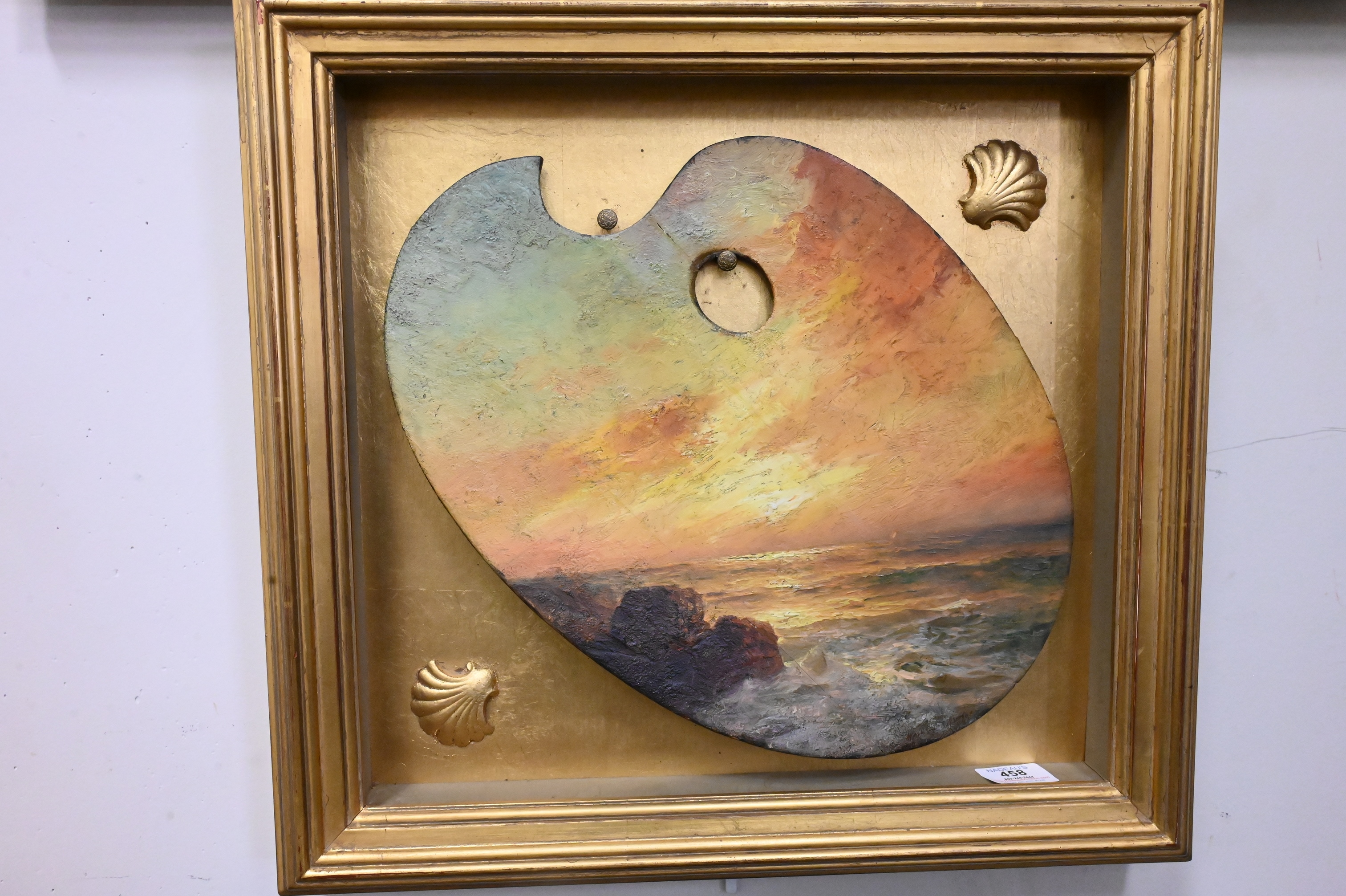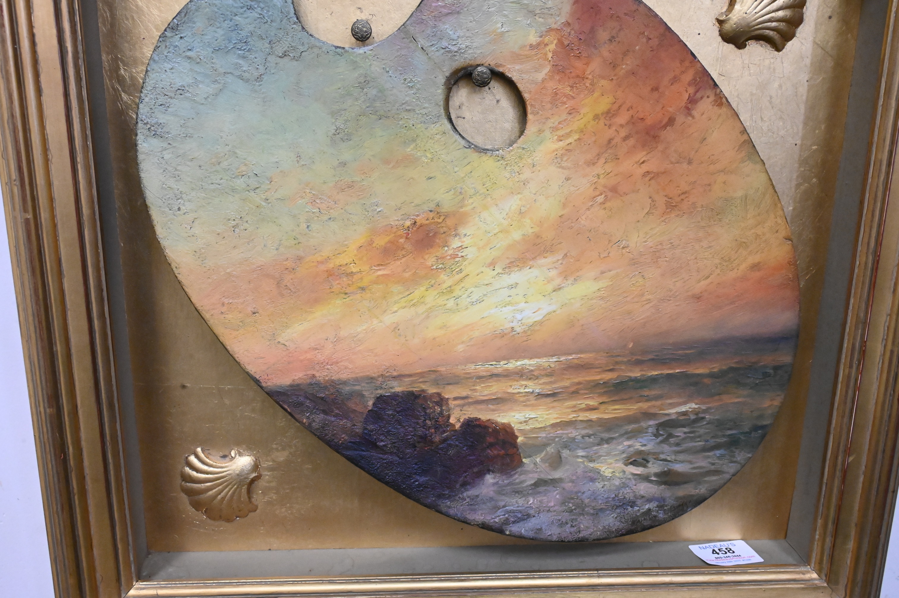 Warren Sheppard (1858-1937) “Sunset Seascape”, oil on board, signed Warren Sheppard lower right, total size 18″ x 19″