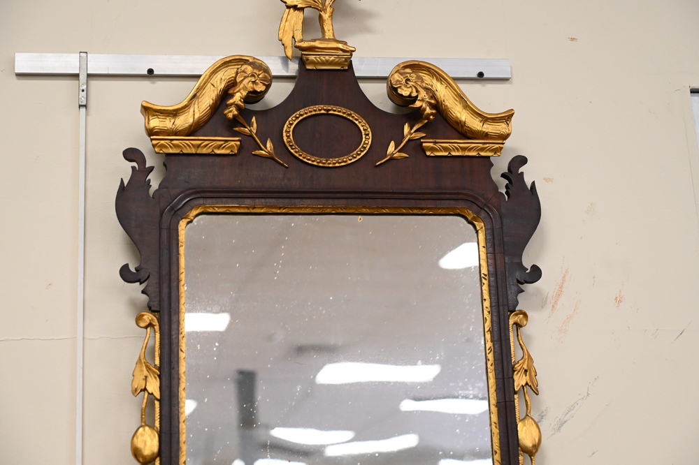 Chippendale Mahogany Mirror, having gilt phoenix bird top, marked with letters on back of eagle, 18th century, height 46 inches.