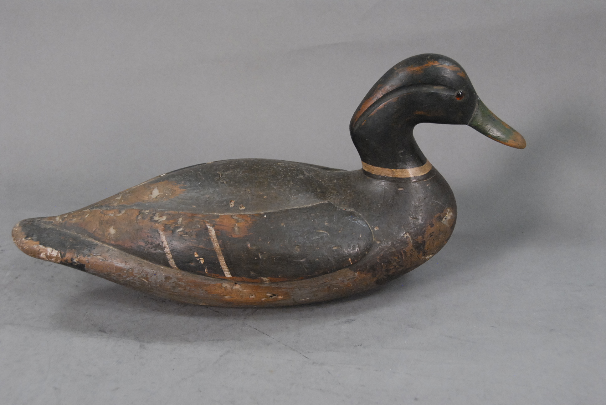 Duck decoy, balsa wood in original paint with glass eyes.