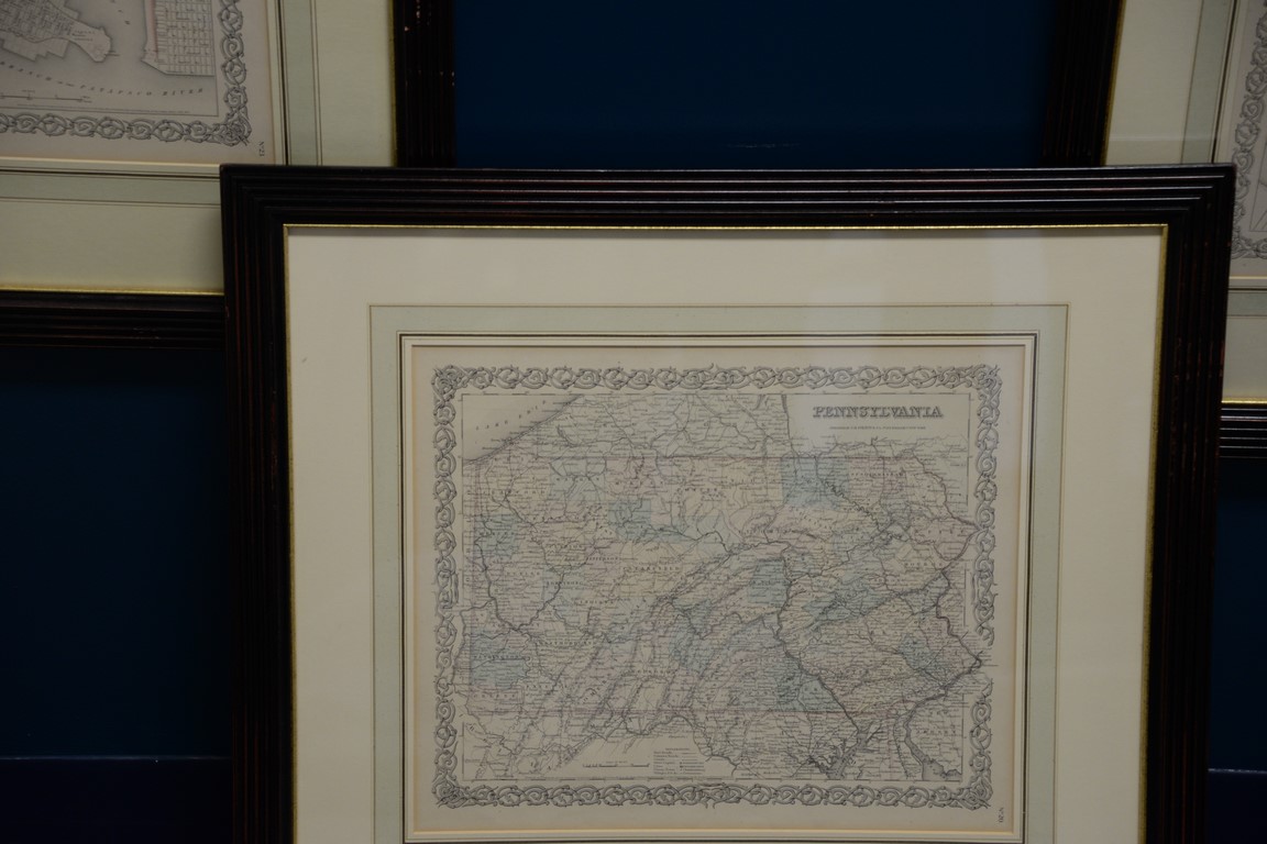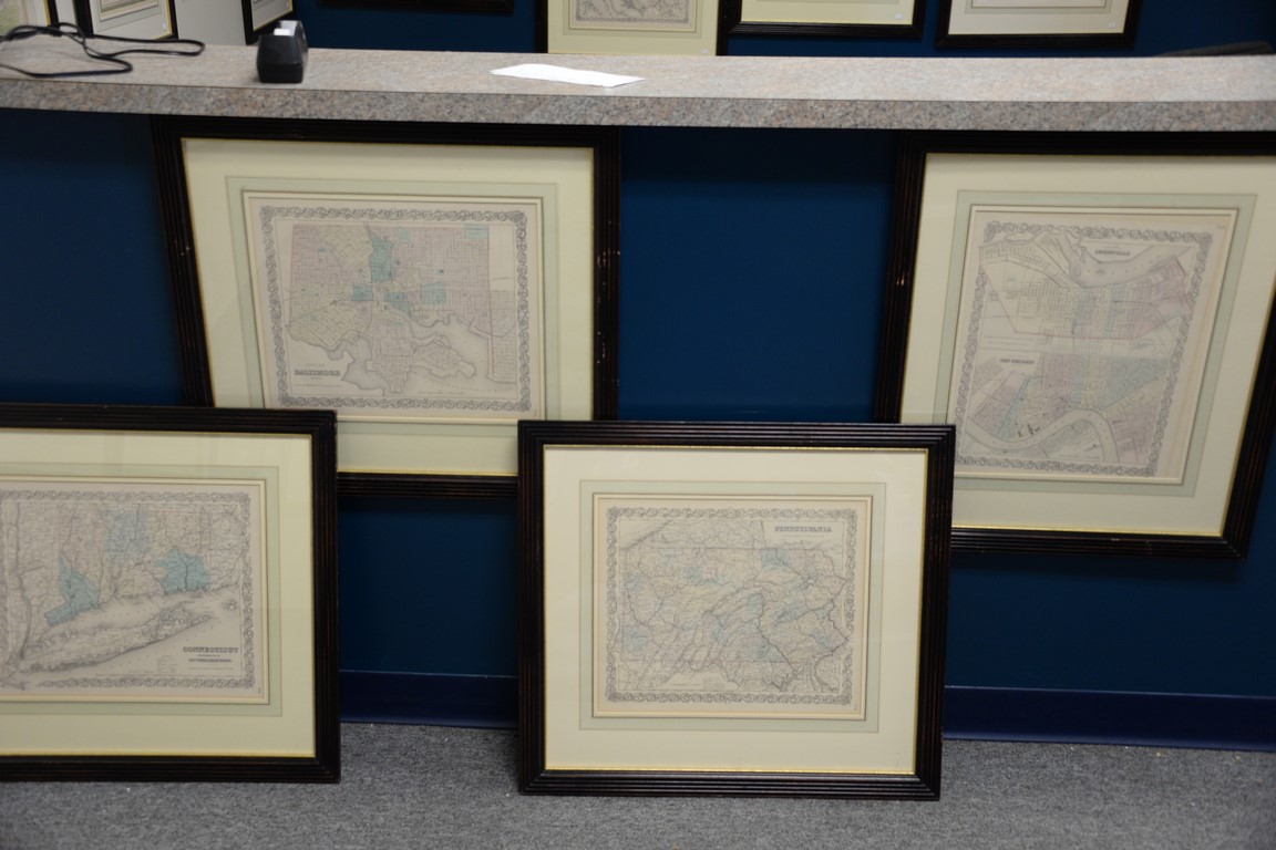 Eight Joseph H. Colton handcolored engraved maps from Colton’s Atlas of the World including Connecticut, Boston, Pittsburgh, Louisville, Michigan, Pennsylvania, Baltimore, Delaware. Provenance: Property from Credit Suisse’s Americana Collection