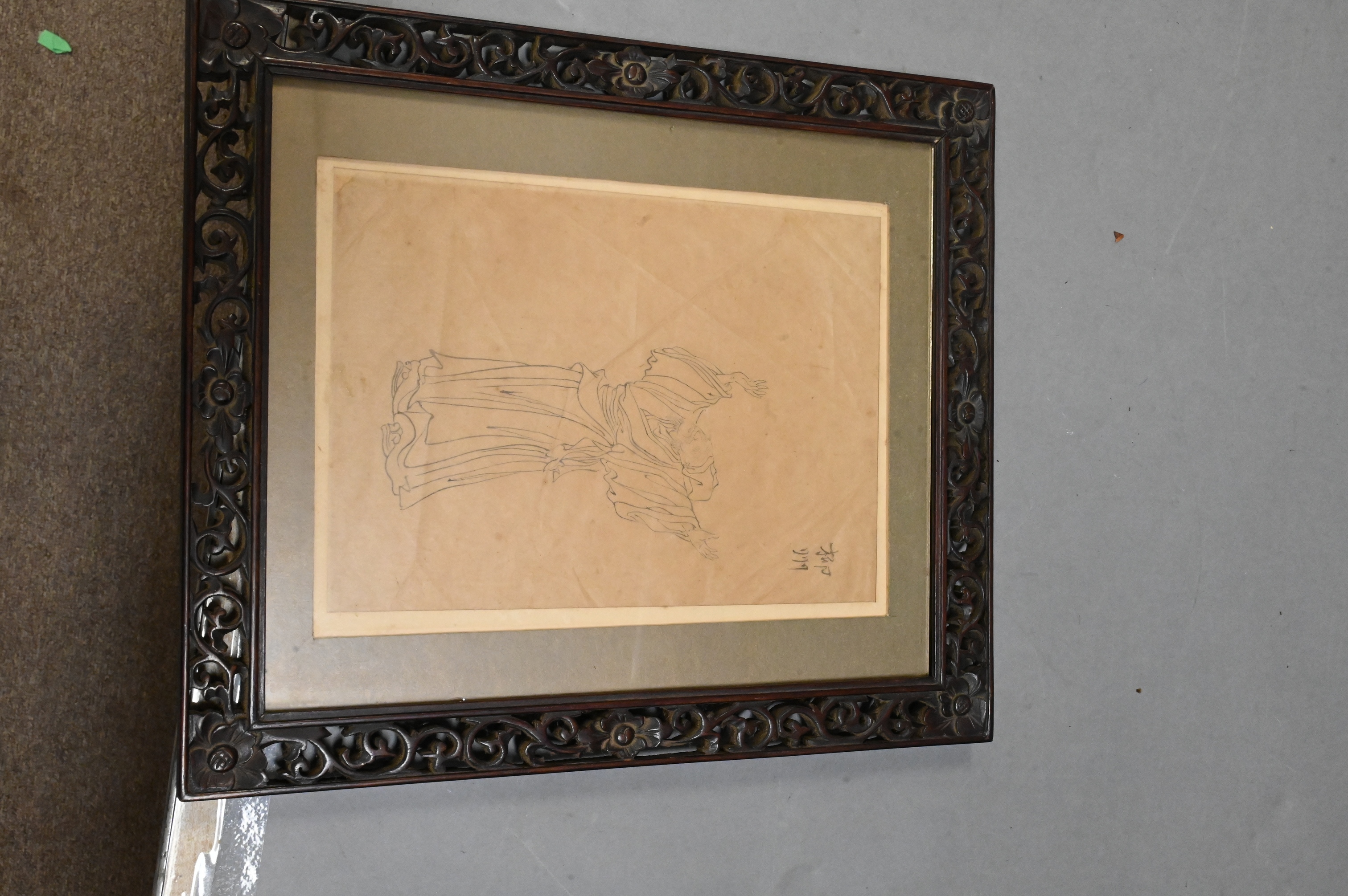 along with Chinese pen and ink on paper of a scholar or poet, marked upper right
