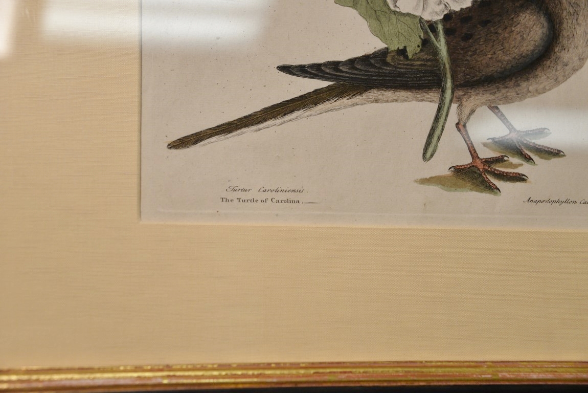Lot 459: Mark Catesby 1679-1749 pair of hand colored copper engravings The Turtle of Carolina, Turtur Caroliniensis Plate #24 and…
