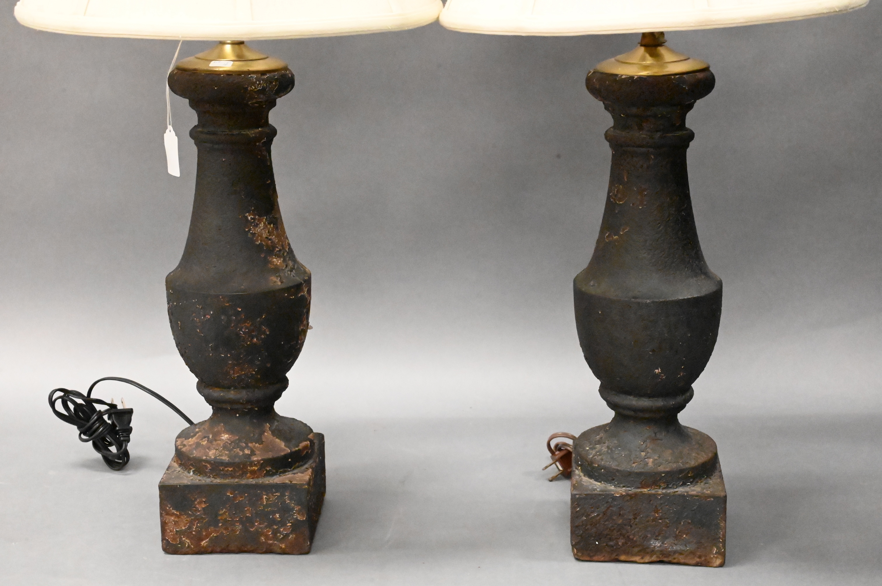 Lot 459: Pair of Iron Archaic Style Column Table Lamps
