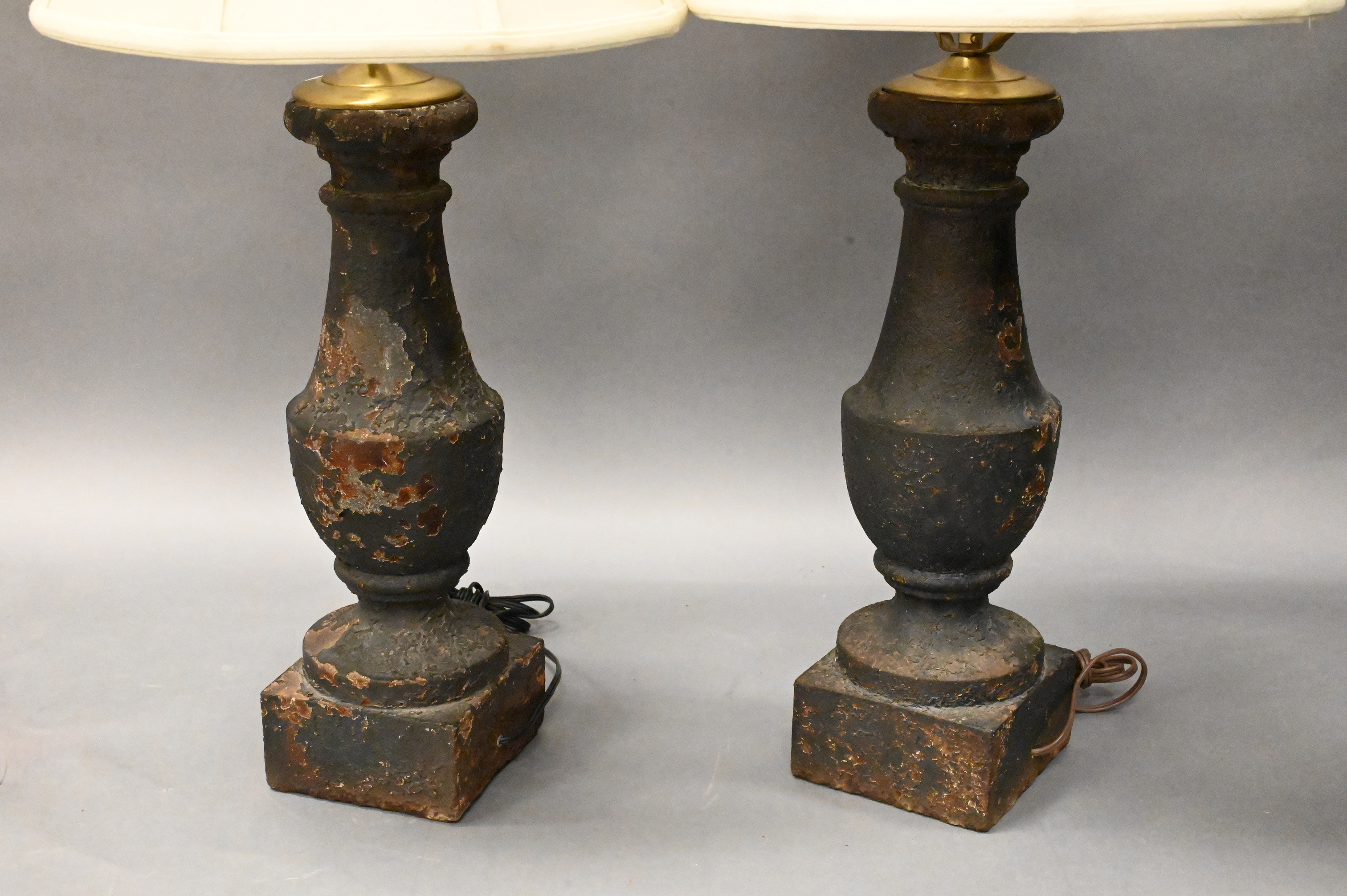 Pair of Iron Archaic Style Column Table Lamps