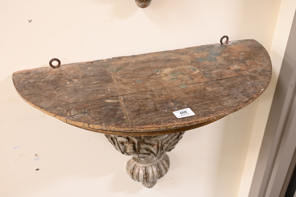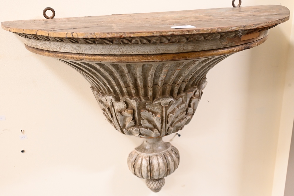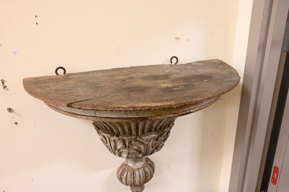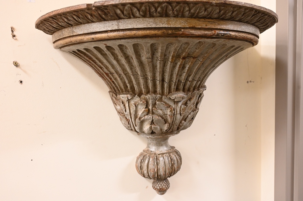 Lot 459: Pair of Large Carved and Painted Wood Architectural Cornices, wall bracket shelves having fluted carved form, height 21 inches, widt…
