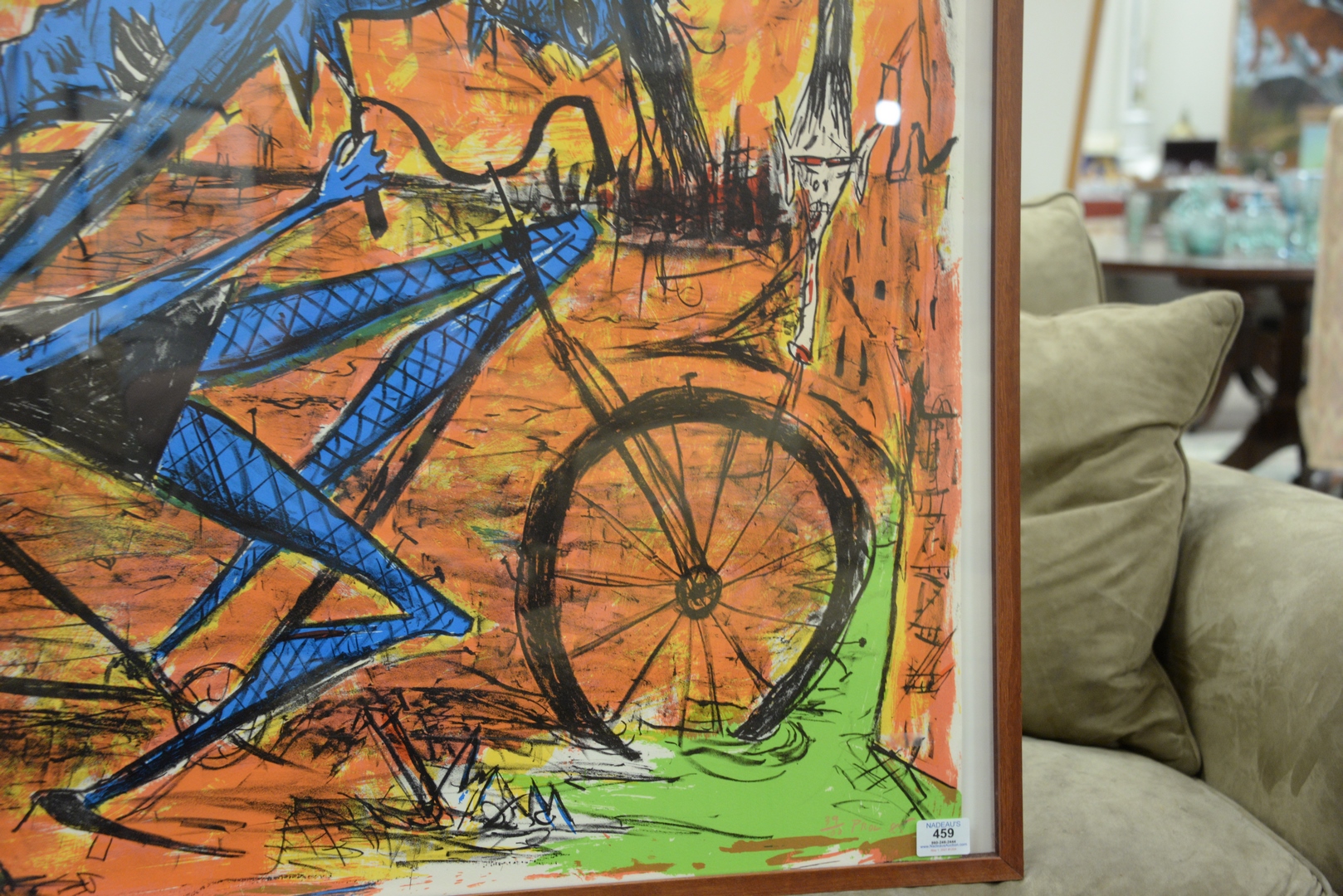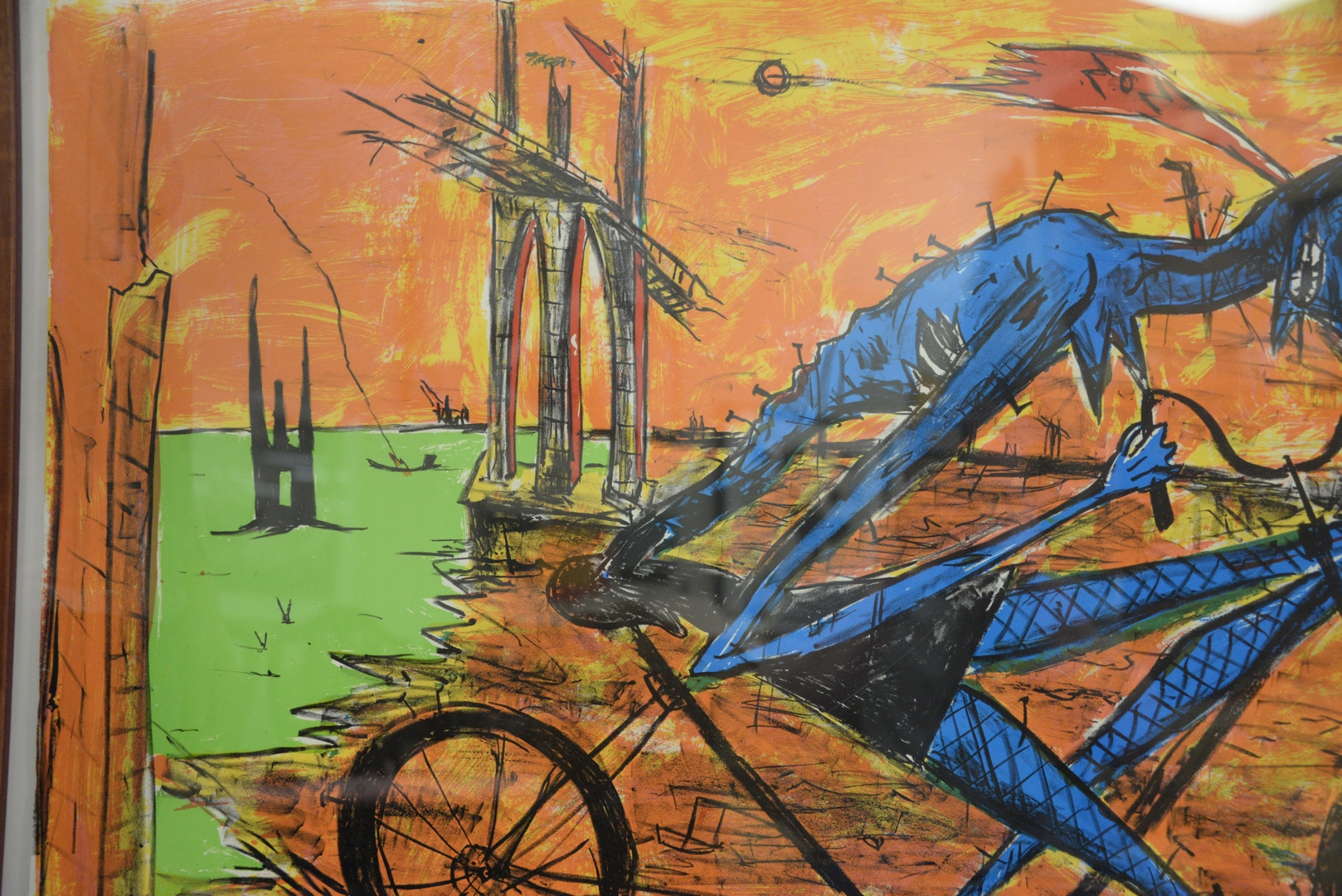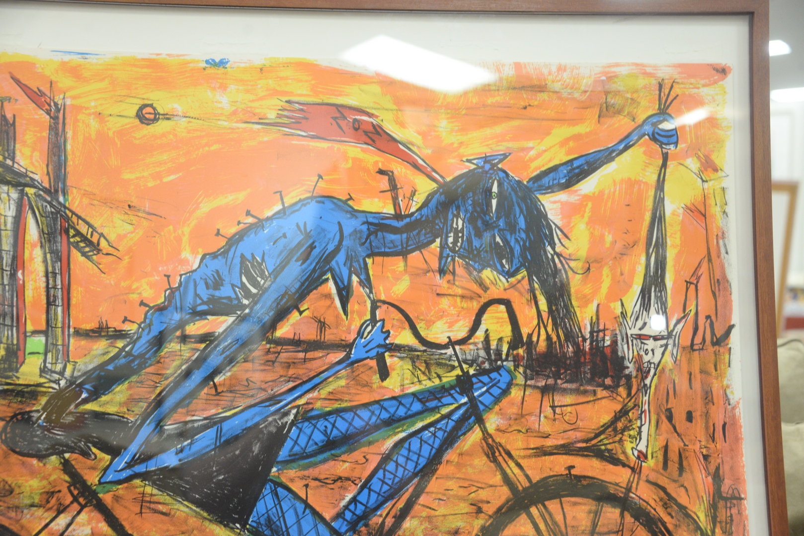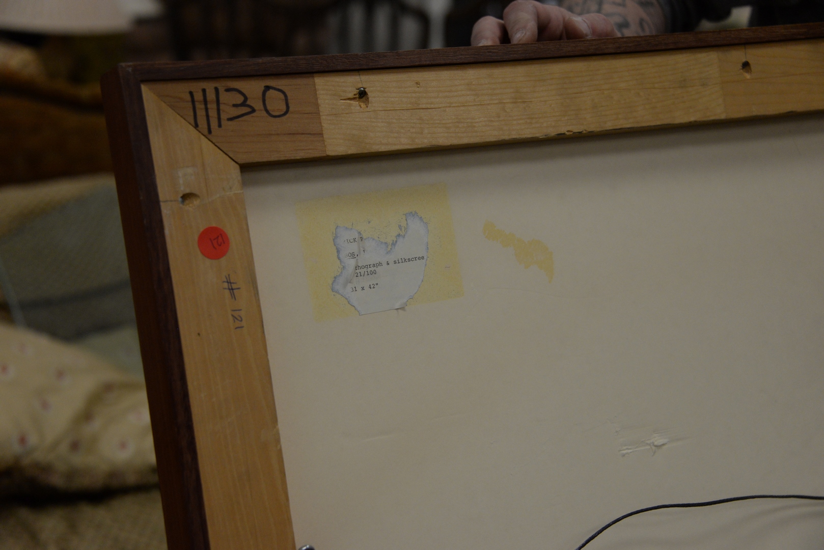 Lot 459: Rick Prol (American, b. 1956), SOS, 1985, lithograph and silkscreen in colors on paper, signed, dated, and editioned lower right “39/100″, 31″ x 42”.