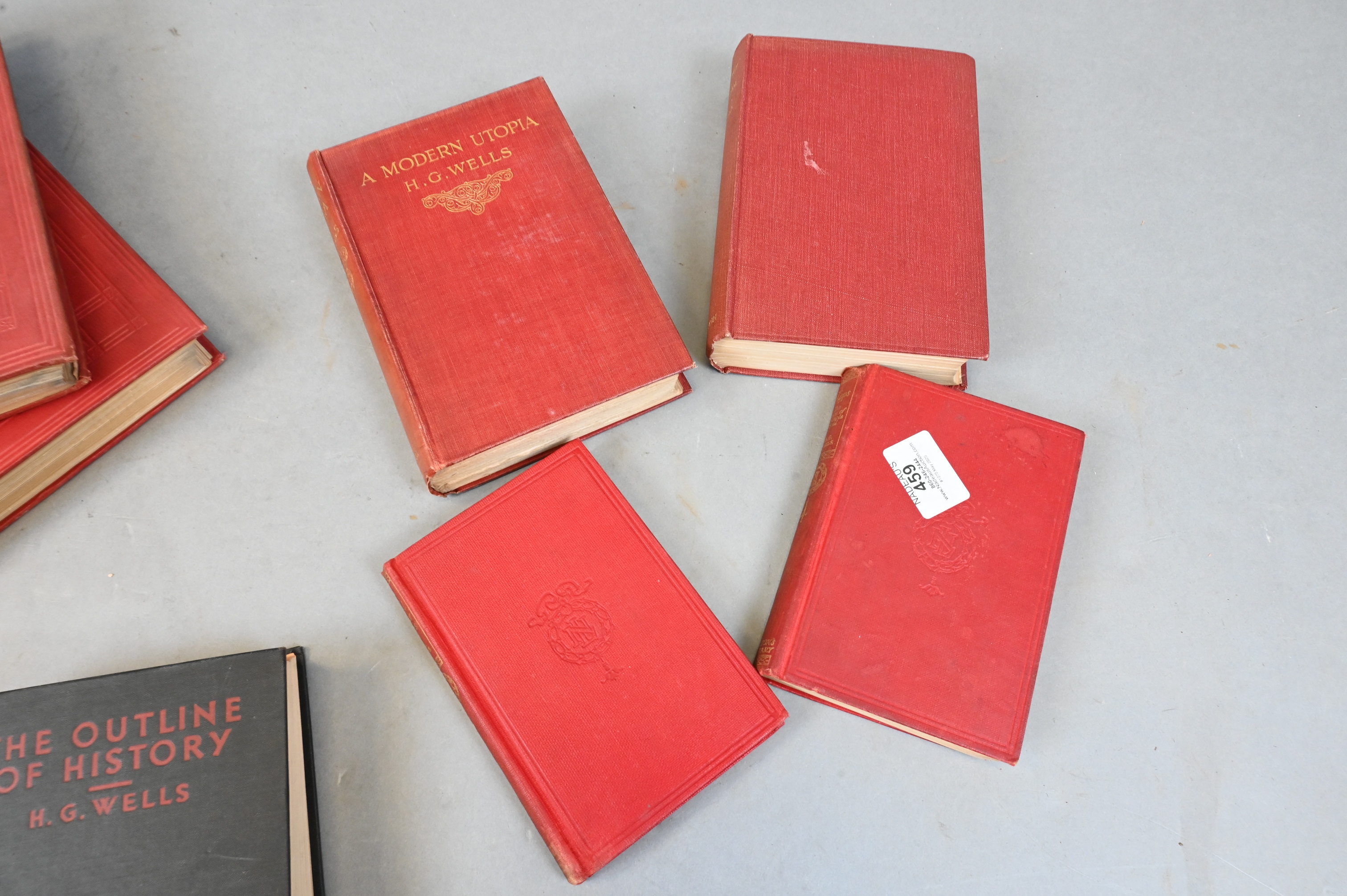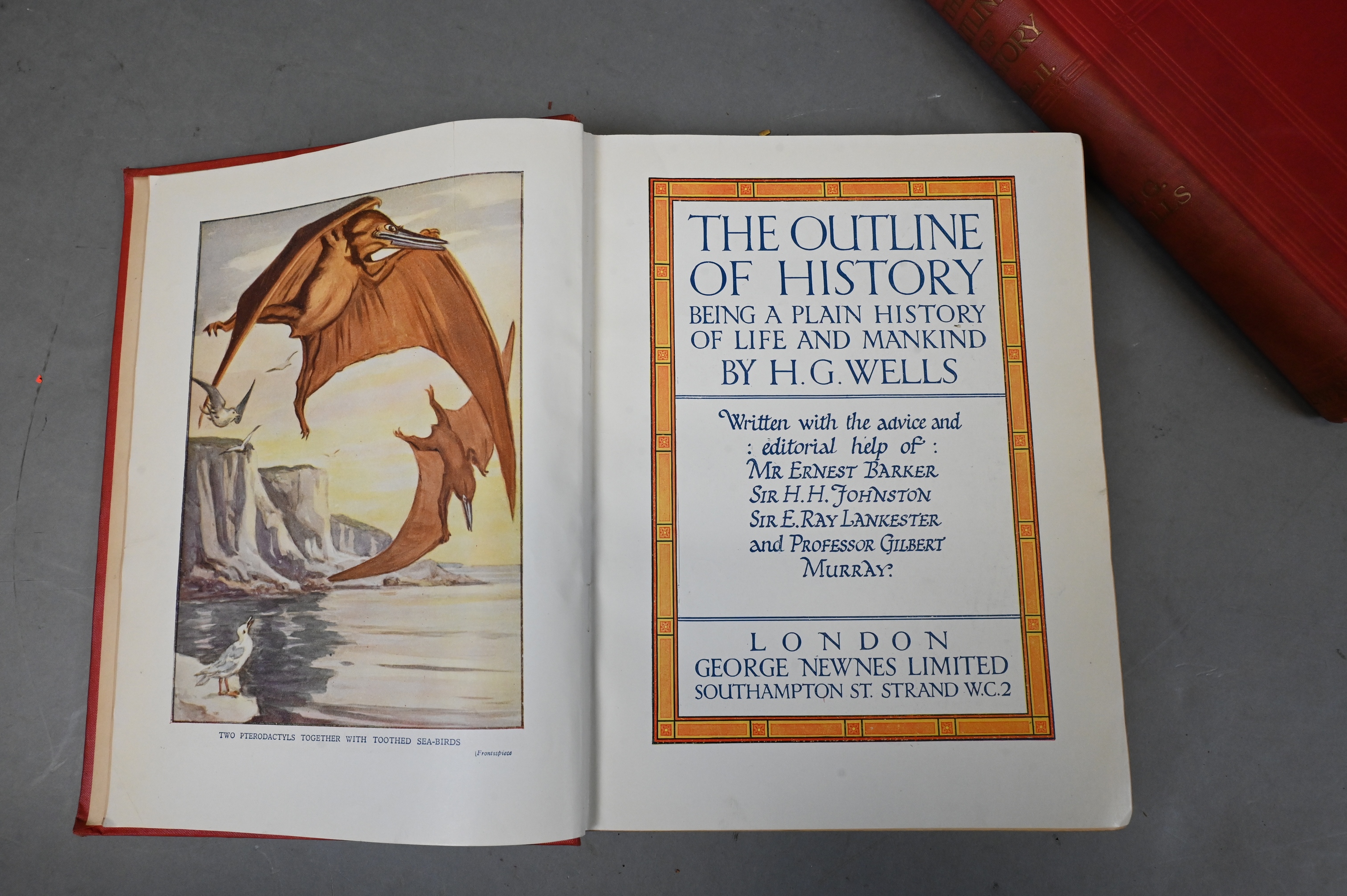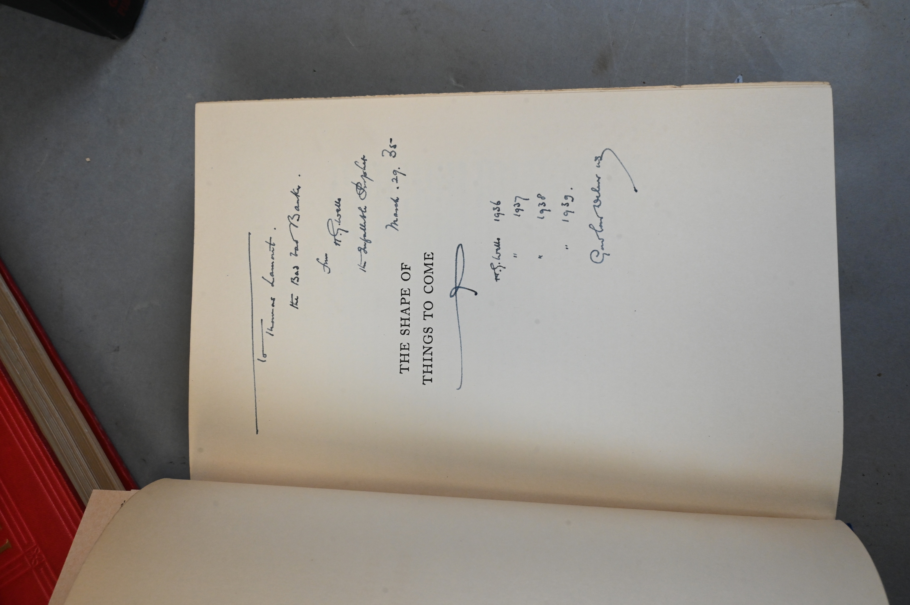 to include two volumes of The Outline of History as well as a combined version and The Shape of Things to Come, three books inscribed and signed by author, The Autocracy of Mr. Parham, London: William Heineman Ltd. 1930 first edition with inscription and signature by author, A Modern Utopia, London: Chapman and Hall 1905 first edition with inscription and signed by author