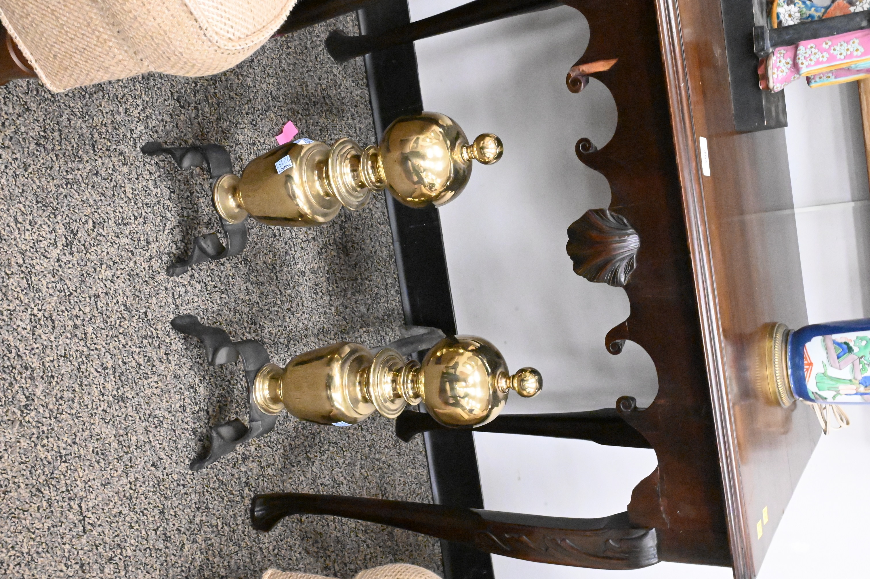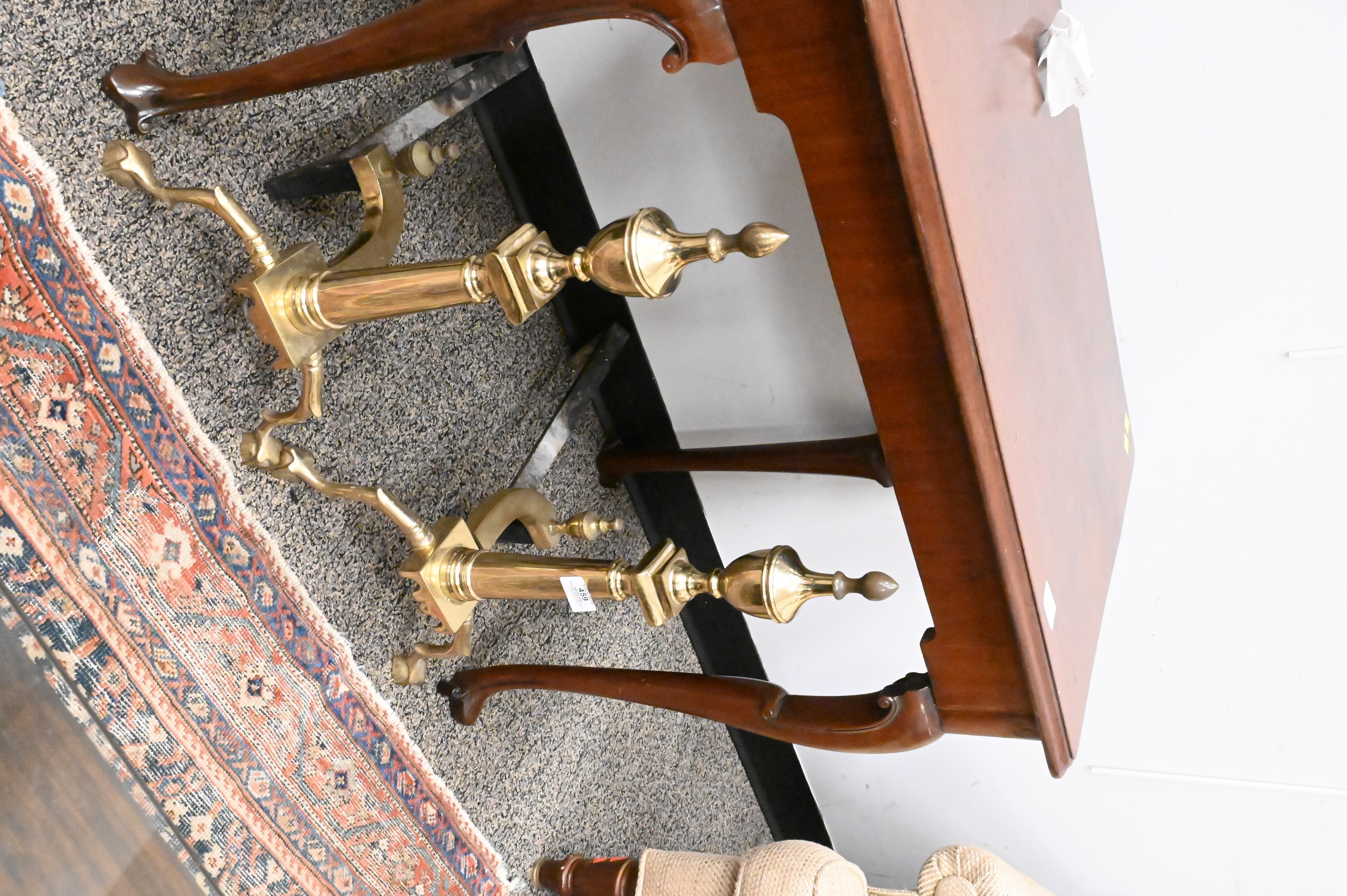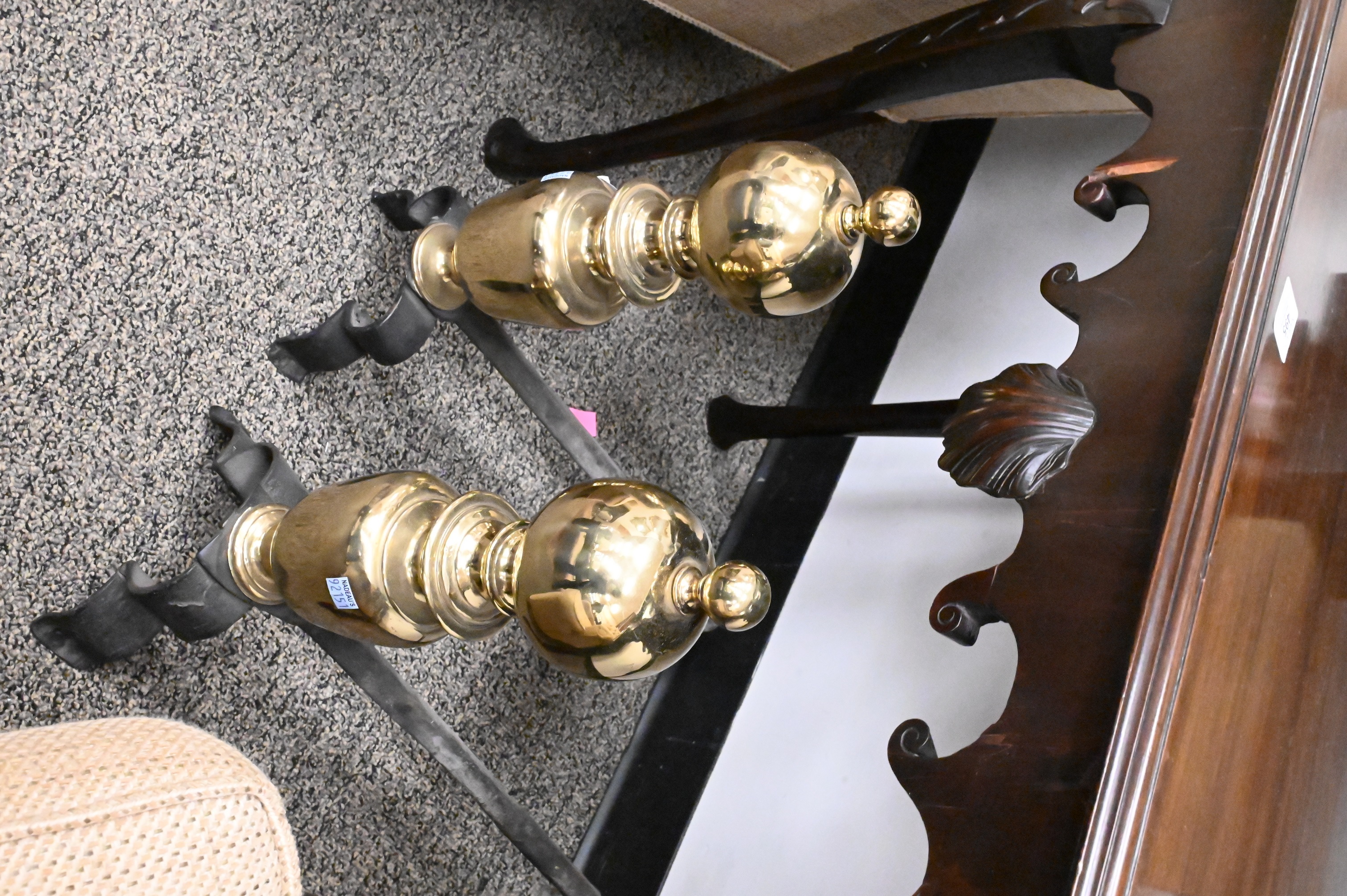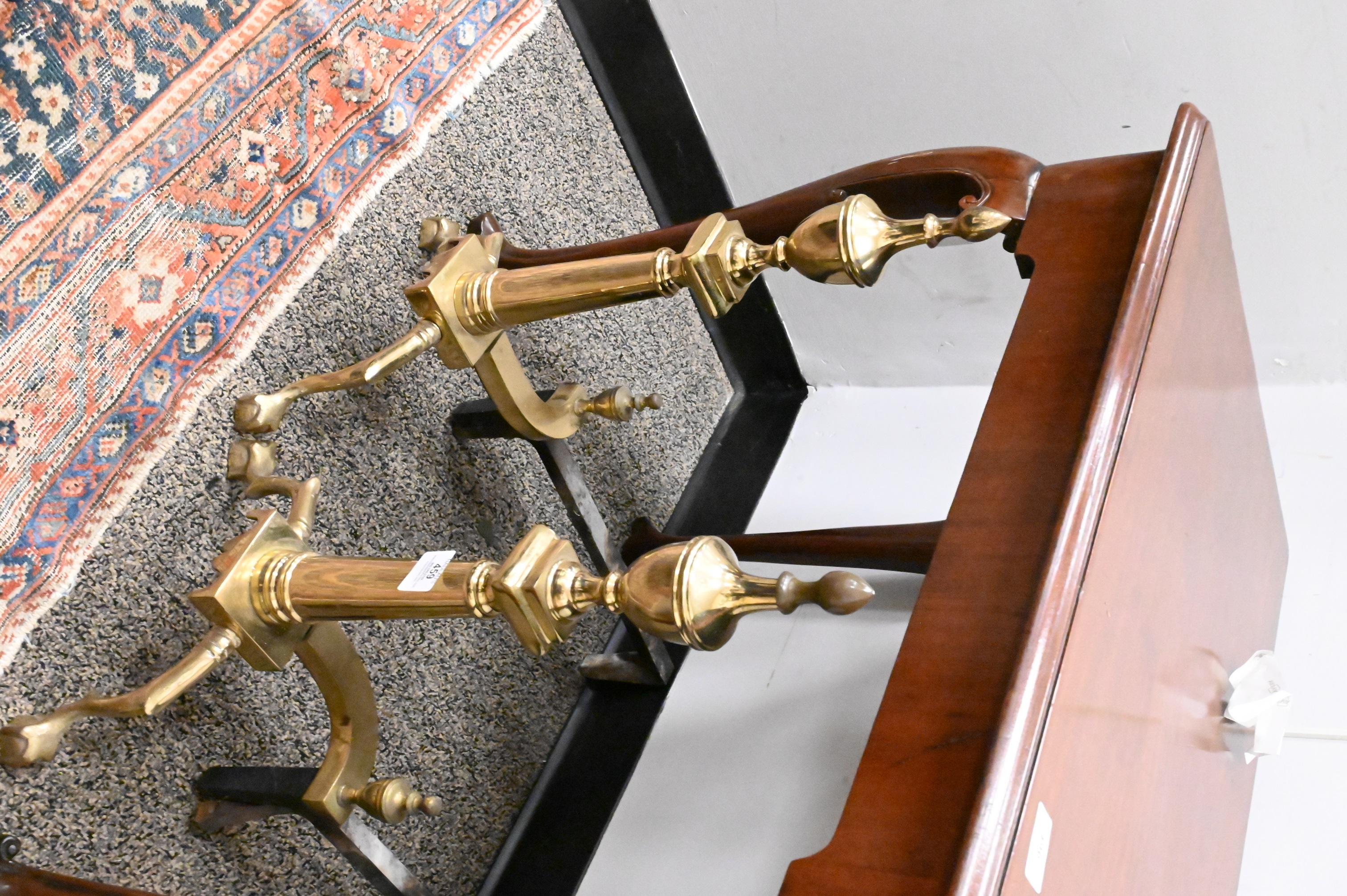 Lot 459: Two Pairs of Brass Reproduction Andirons