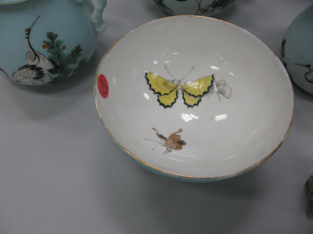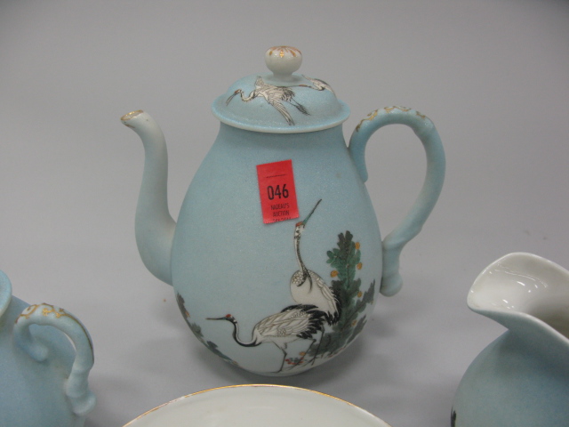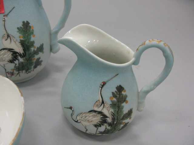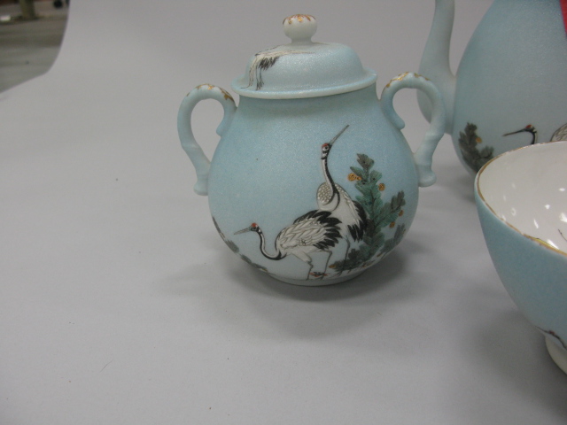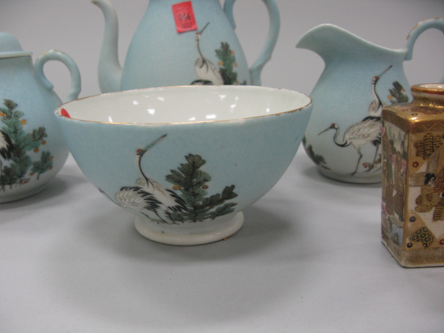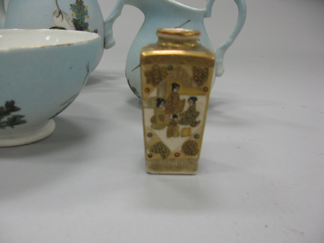 5 piece lot to include four piece Japanese enamel decorated porcelain tea set and a Japanese Satsuma small vase