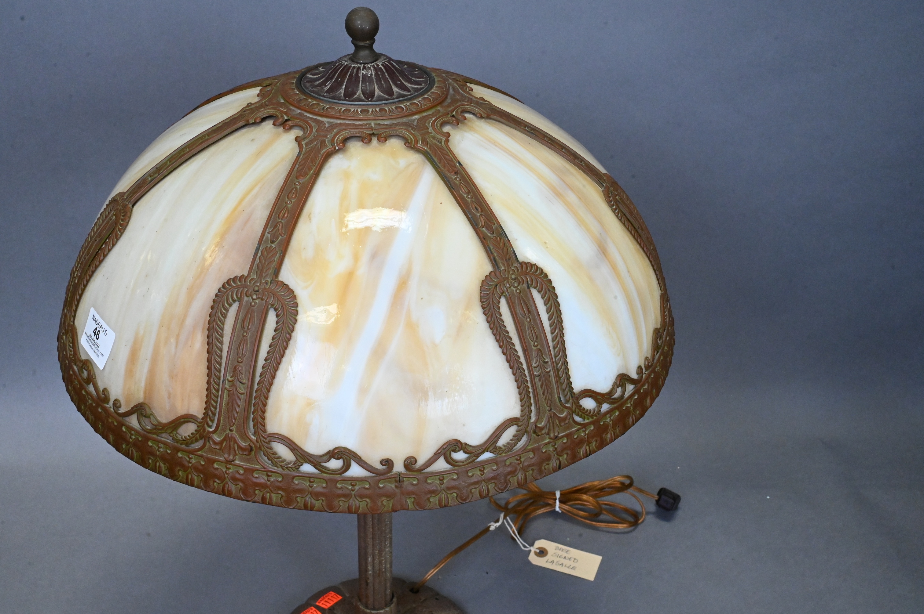 Lot 46: Arts and Crafts Slag Glass Table Lamp