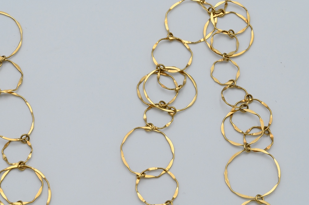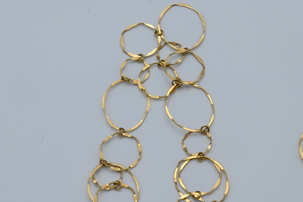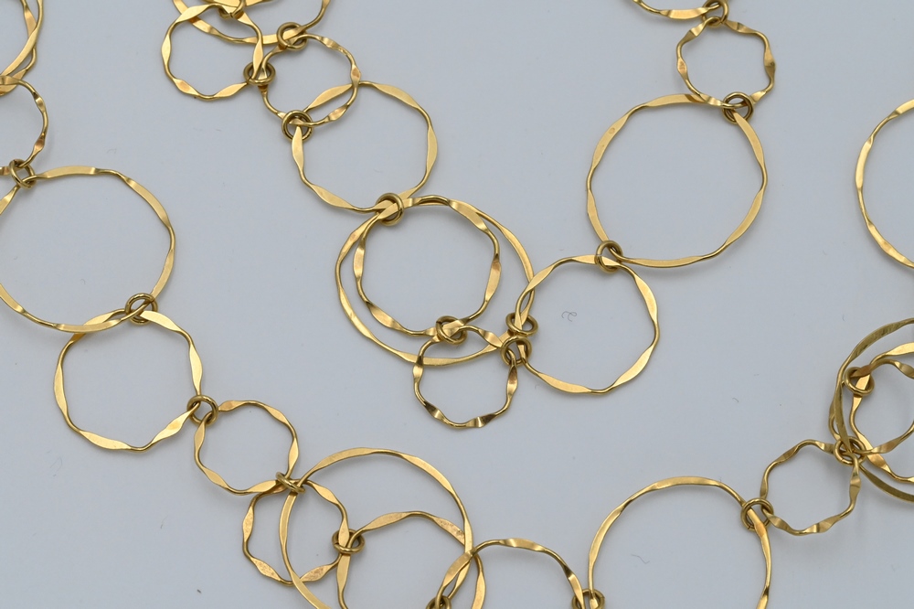 Lot 46: Cartier 18 Karat Gold Necklace, having various size circles, signed Cartier # 53435, total length 39 inches.