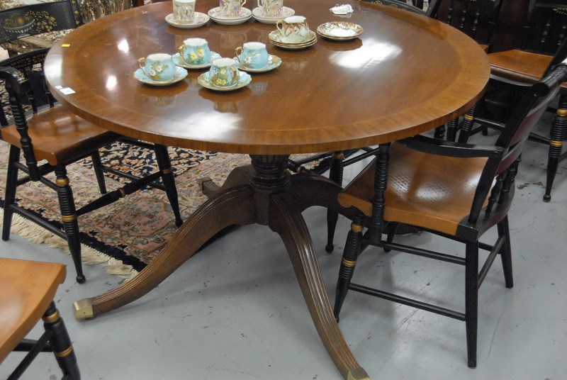 Lot 46: Custom mahogany round pedestal table, ht. 30in. dia. 48in.