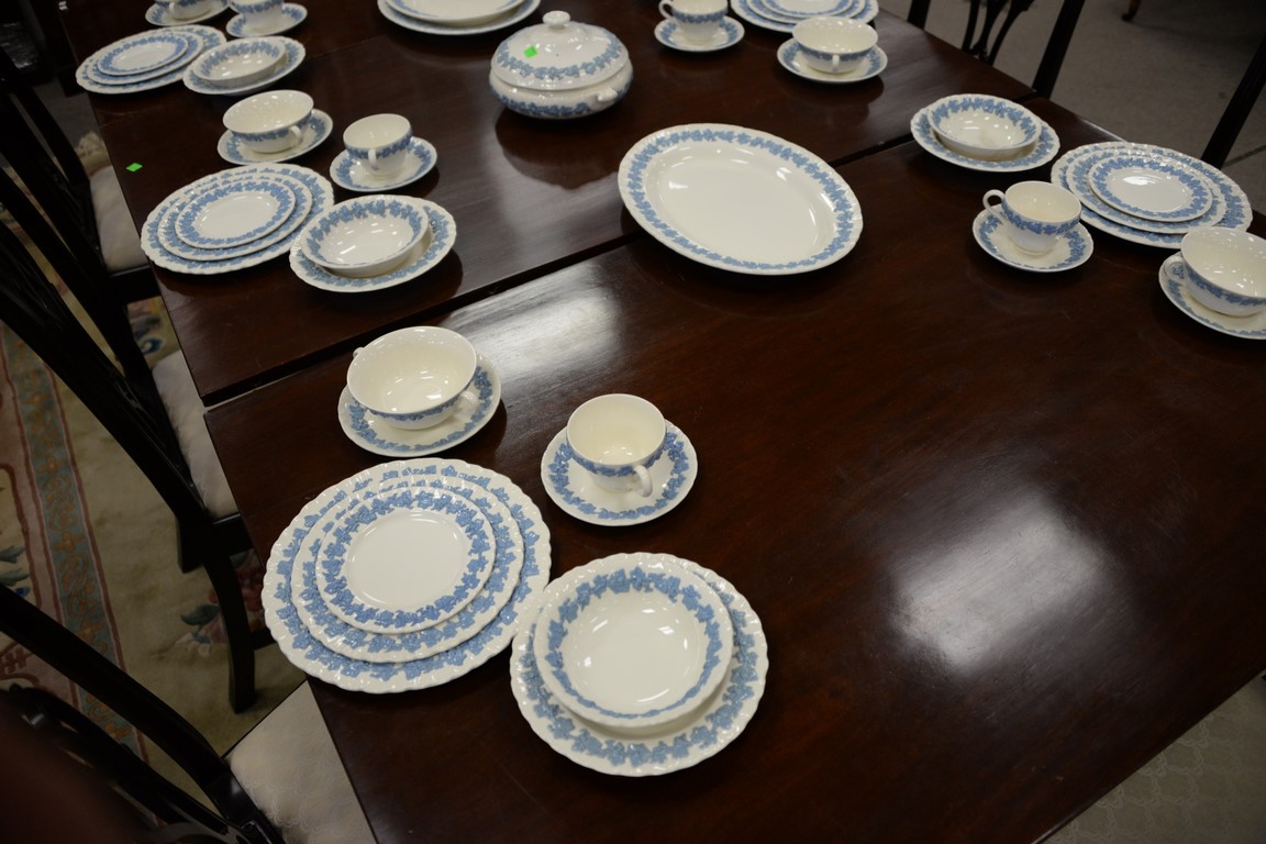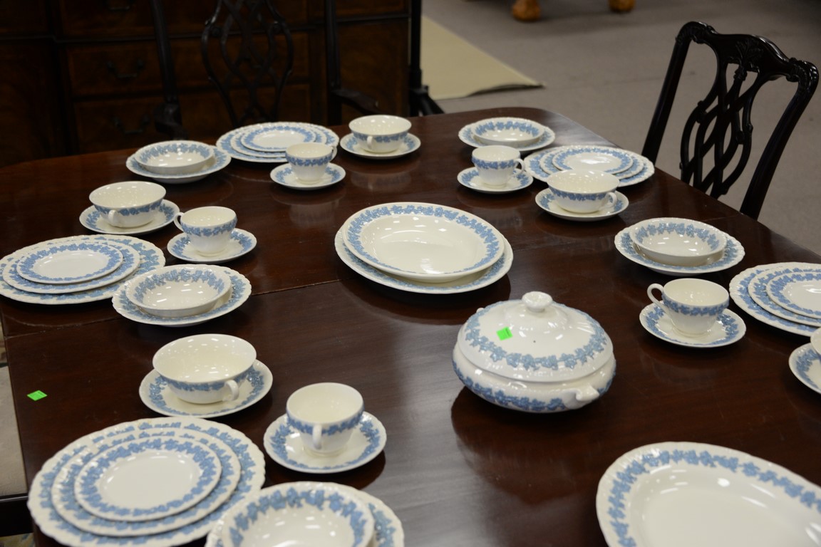 Lot 46: Large set of Wedgwood embossed Queen’s ware china marked on back Wedgwood for Etruria and Barlaston, 186 total pieces, complete serv…