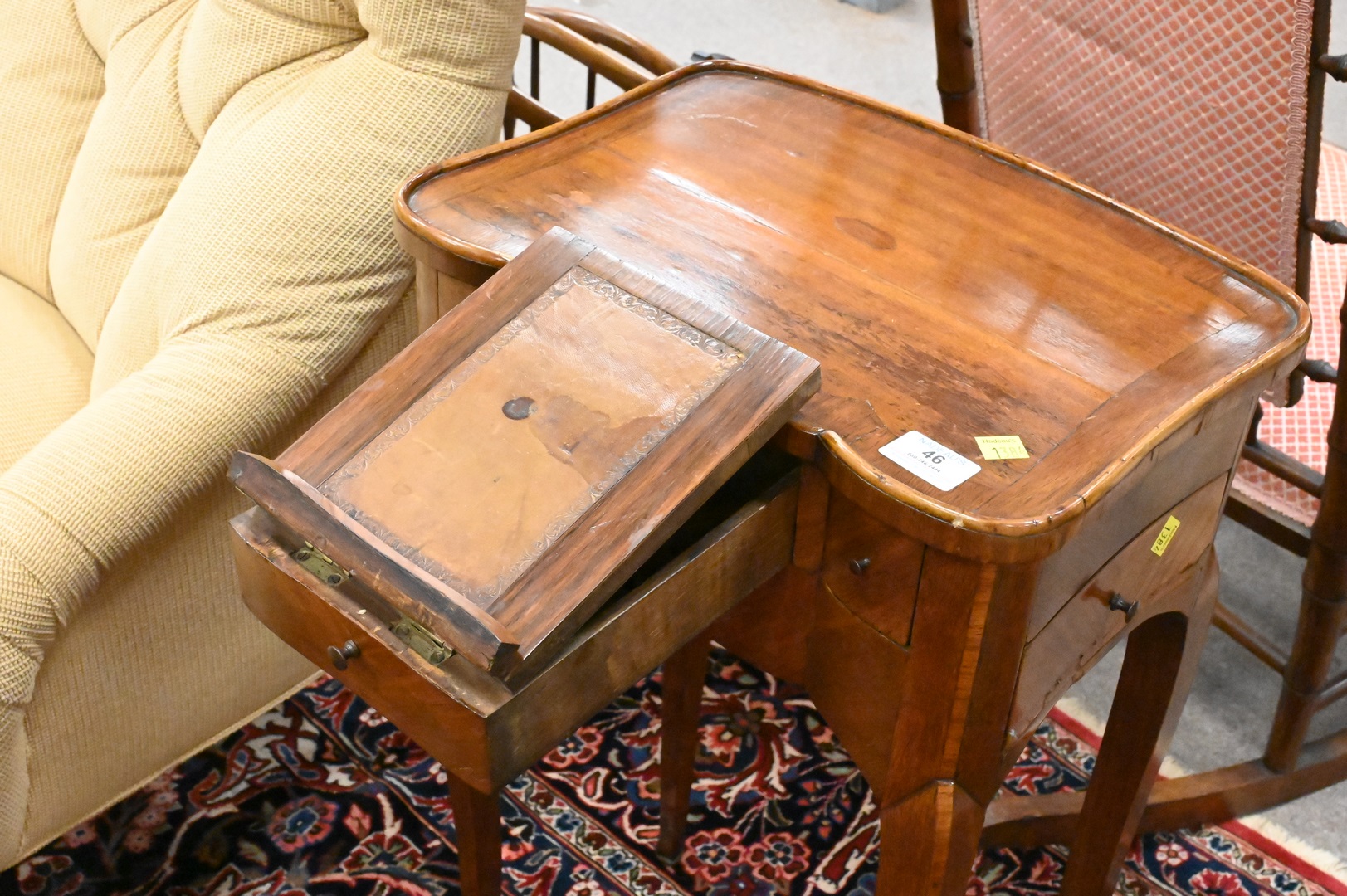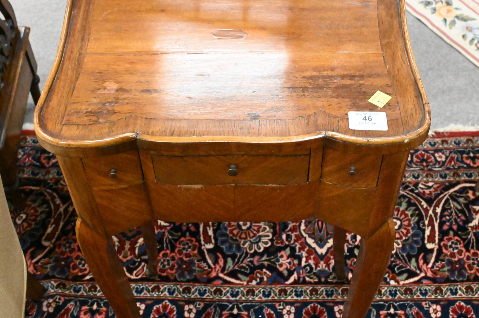 Louis XV Style Stand, having pull out leather top writing surface, height 29 inches, top 12″ x 16″.