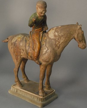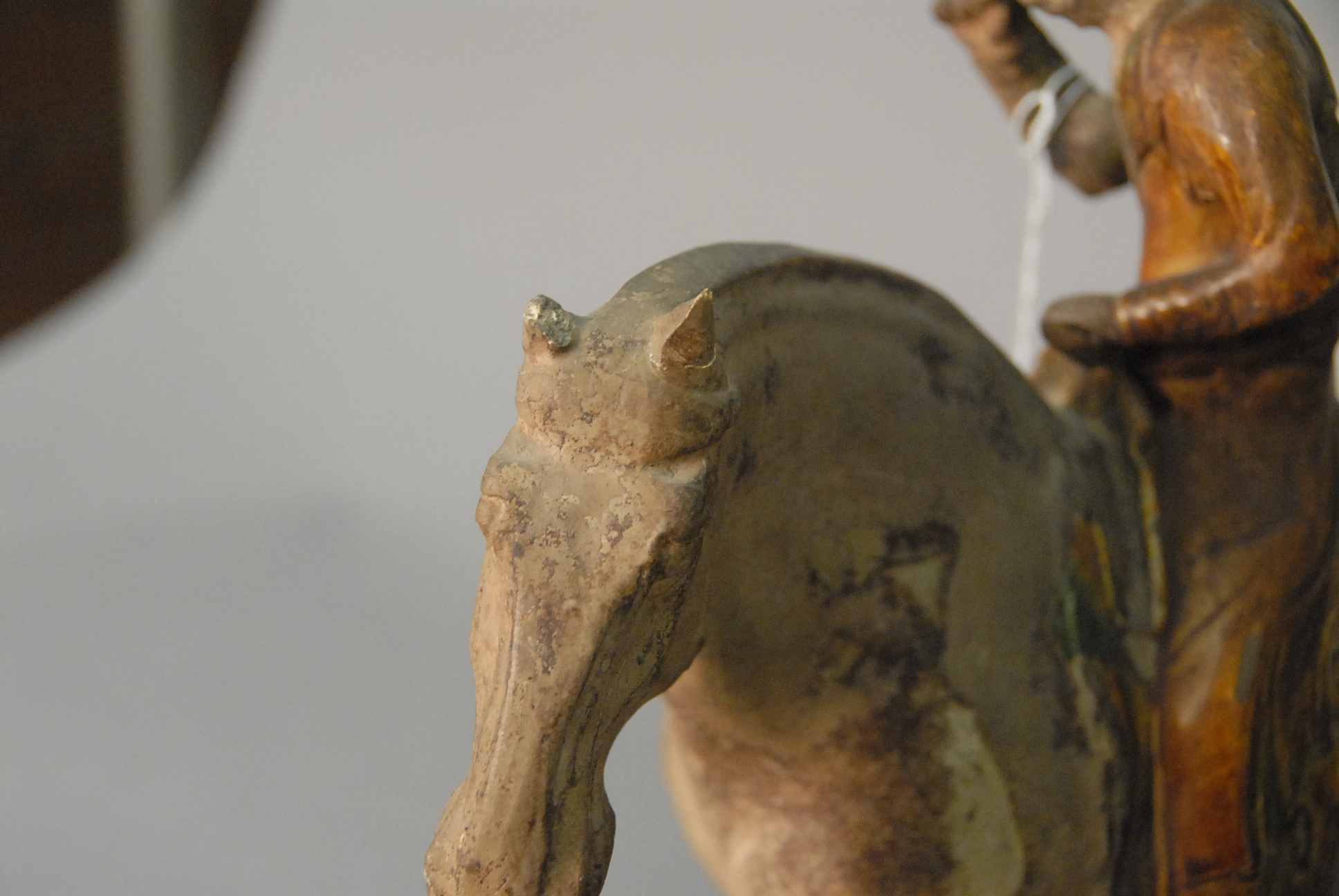 Pottery horse and rider in Tang-style with sancai glaze, China, 19th century. ht. 15in.