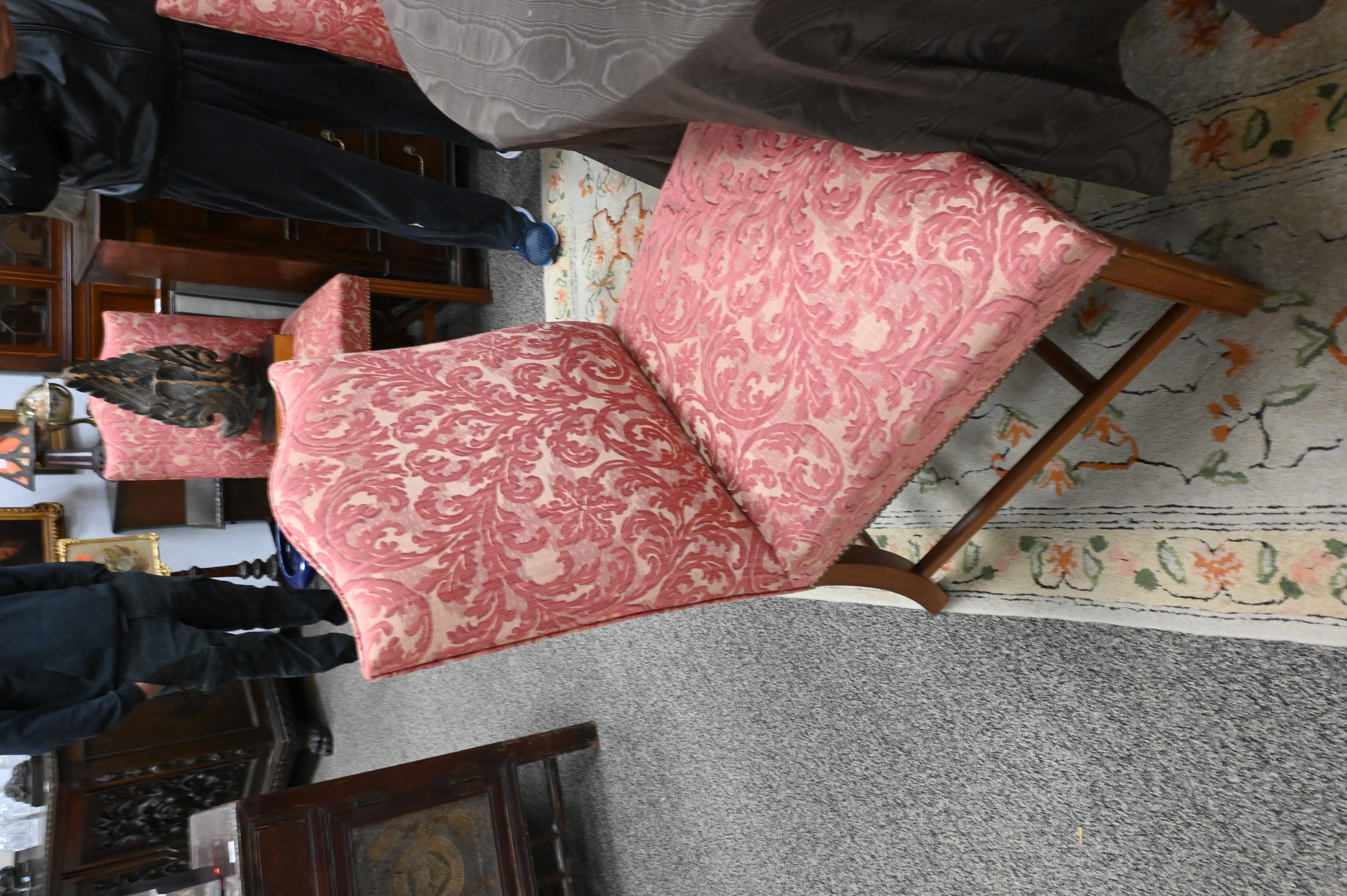 to include 10 side chairs and two armchairs, all upholstered in Rubelli fabric set on mahogany frame