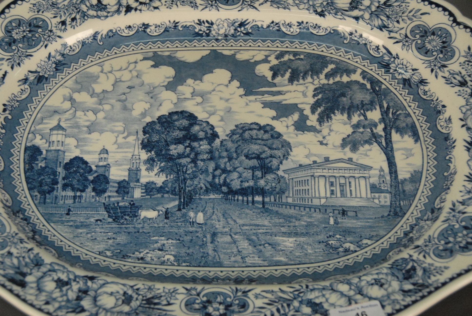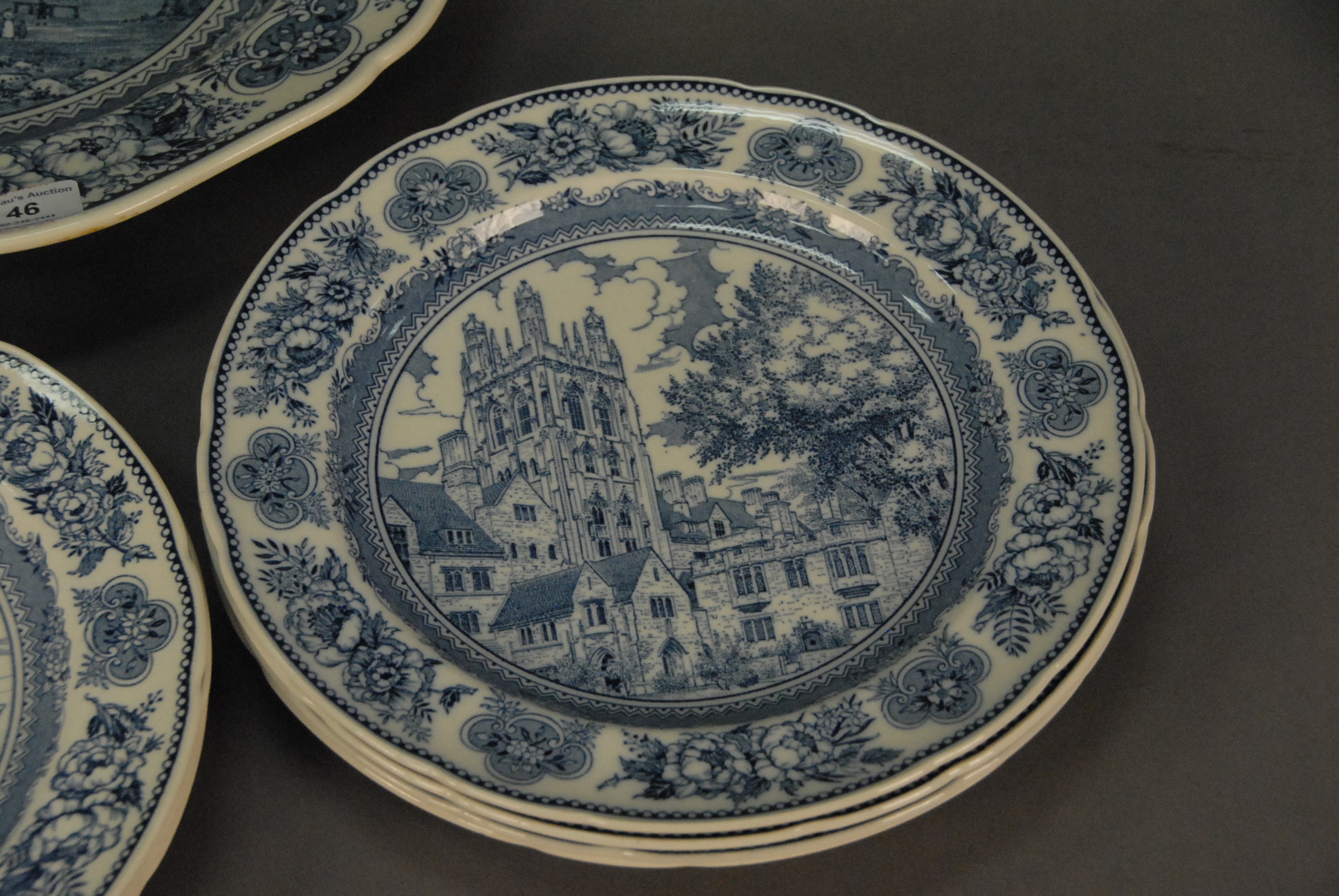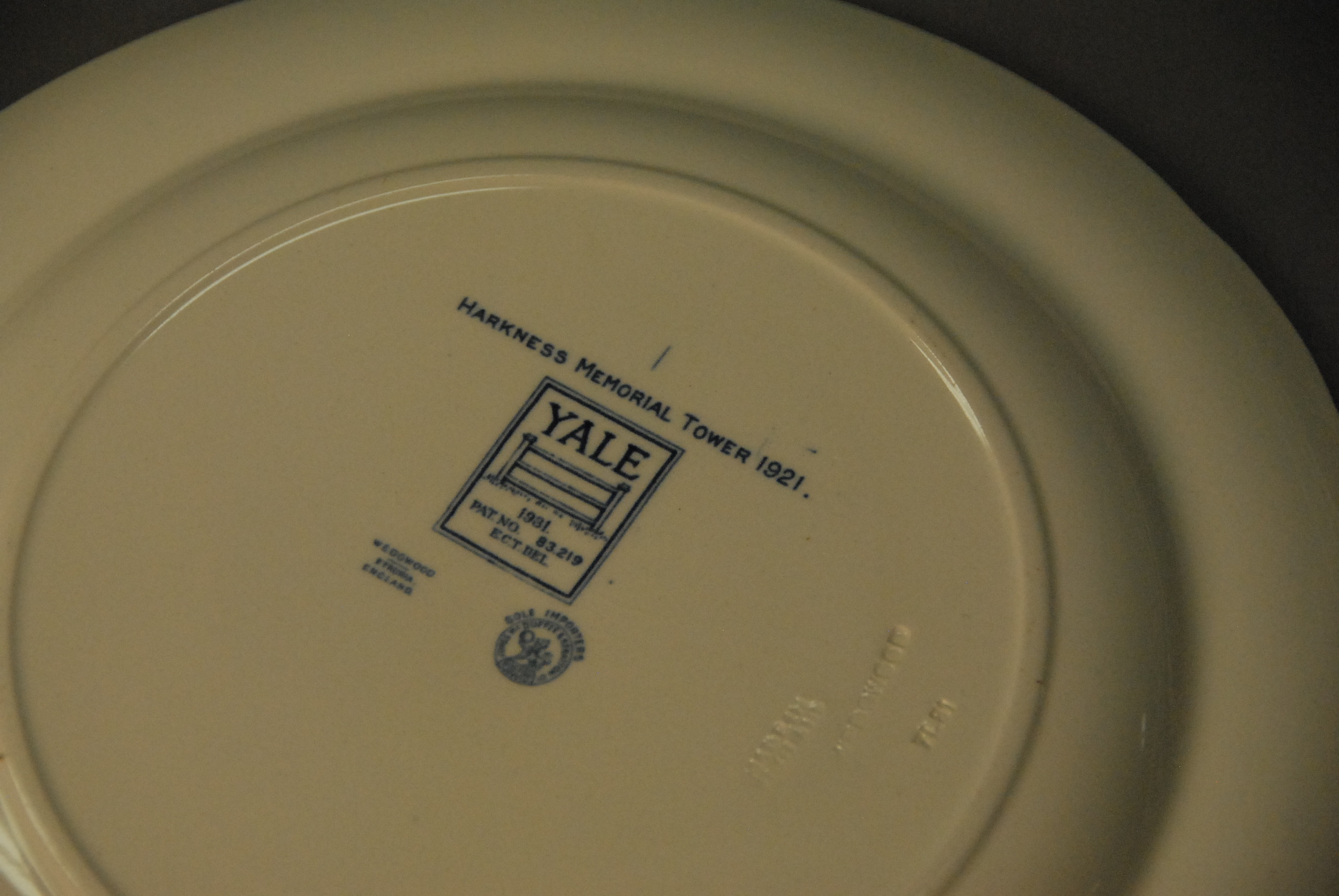 Thirteen Wedgwood Yale plates and large platter.