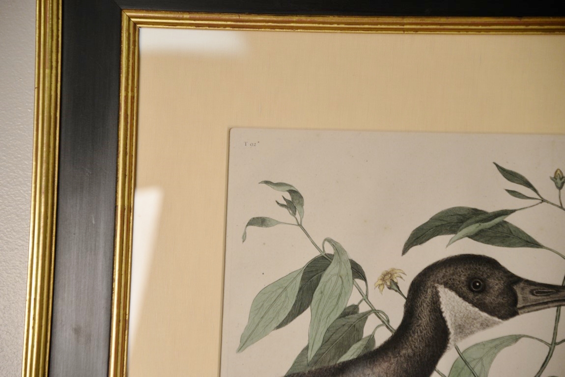Lot 460: Mark Catesby 1679-1749 pair of hand colored copper plate engravings Canada Goose, Anser Canadensis Plate #33 and The…