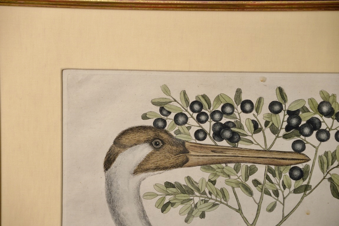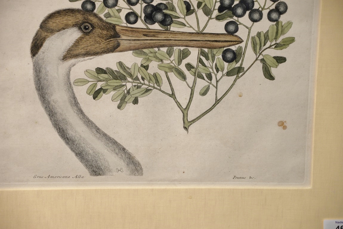 Mark Catesby 1679-1749 pair of hand colored copper plate engravings Canada Goose, Anser Canadensis Plate #33 and The Whooping Crane, Gurs Americana Alba Plate #24 From The Natural History of Carolina, Florida and the Bahama Islands sight size: 11 x 14 Provenance: Property from Credit Suisse’s Americana Collection