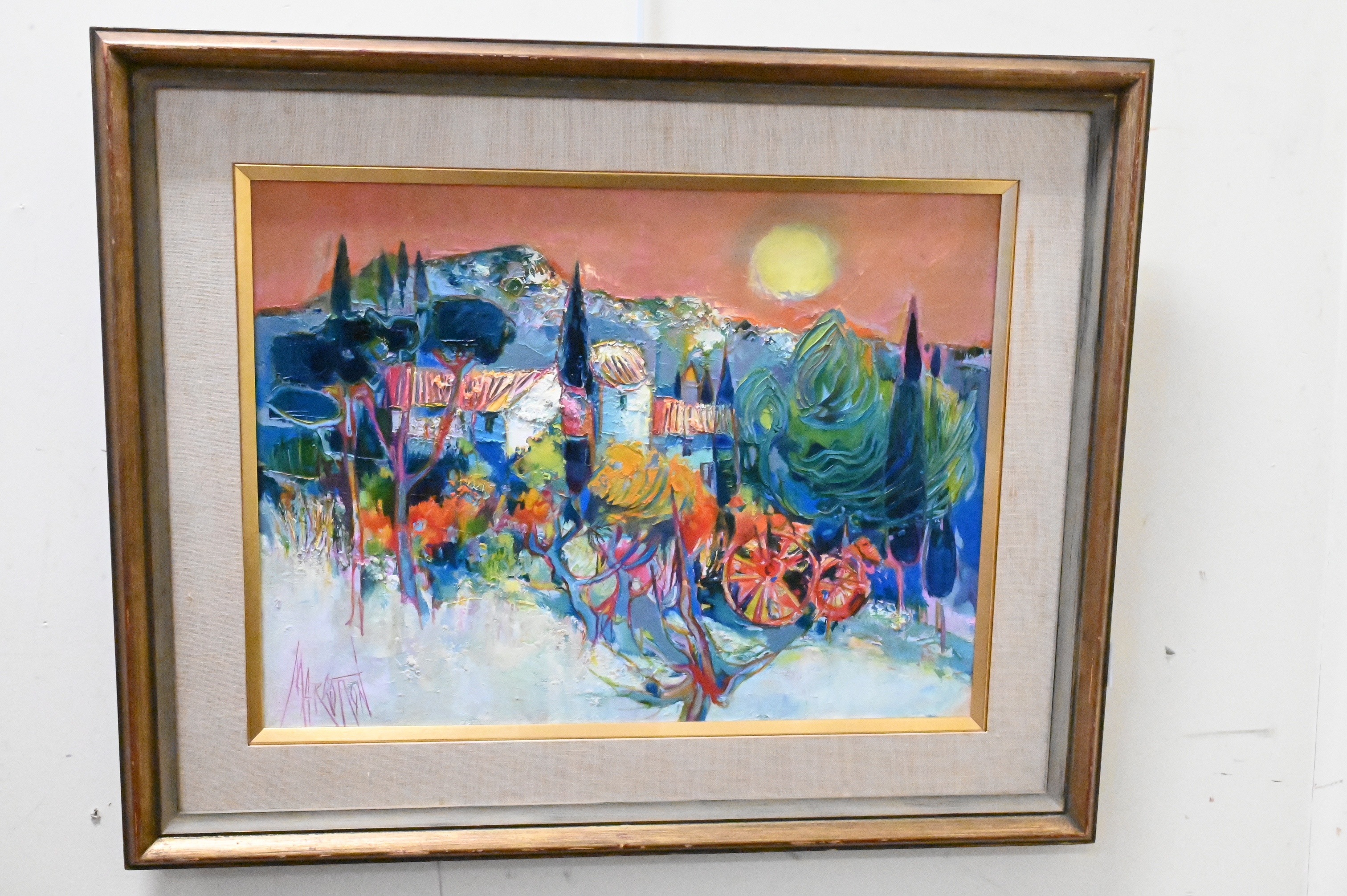 Signed lower left Margotton, signed and titled on verso Mas Aux Oliviers D’Or Rene Margotton