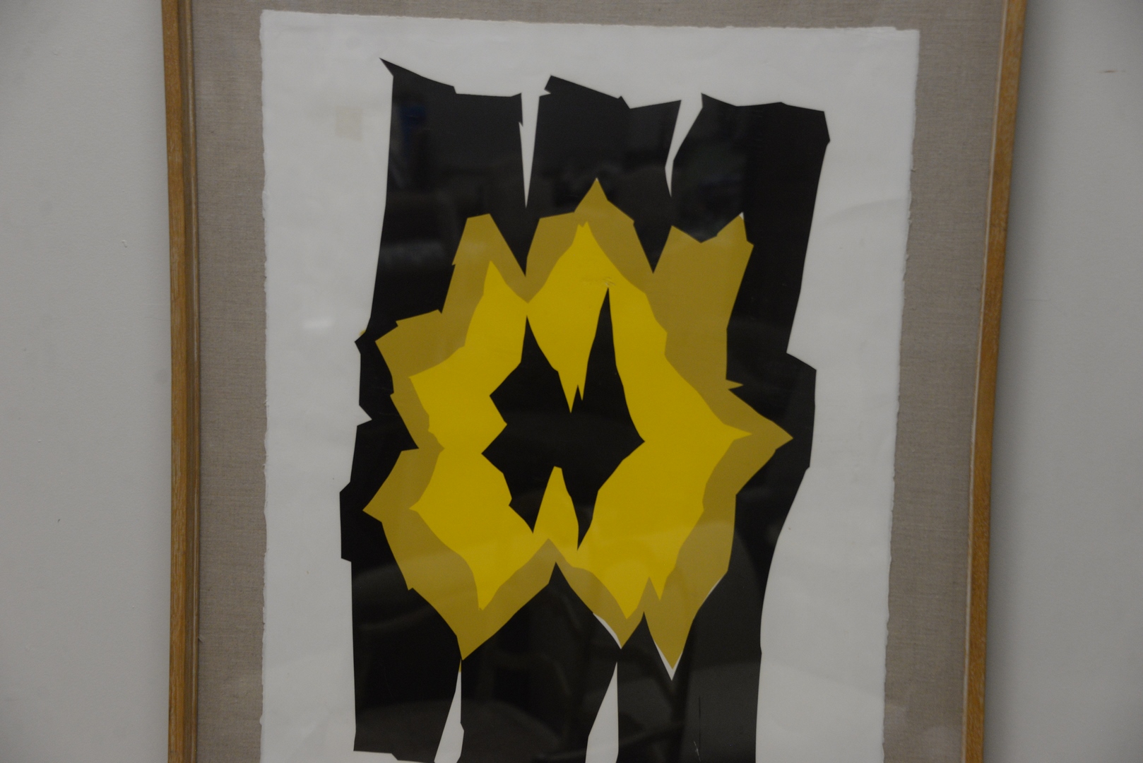Lot 460: William Gear (British, 1915-1997), Yellow Center, 1967, lithograph in colors on paper, signed, dated, and editioned ‘3/25’ in pencil in the lower margin, 30″ x 22″.