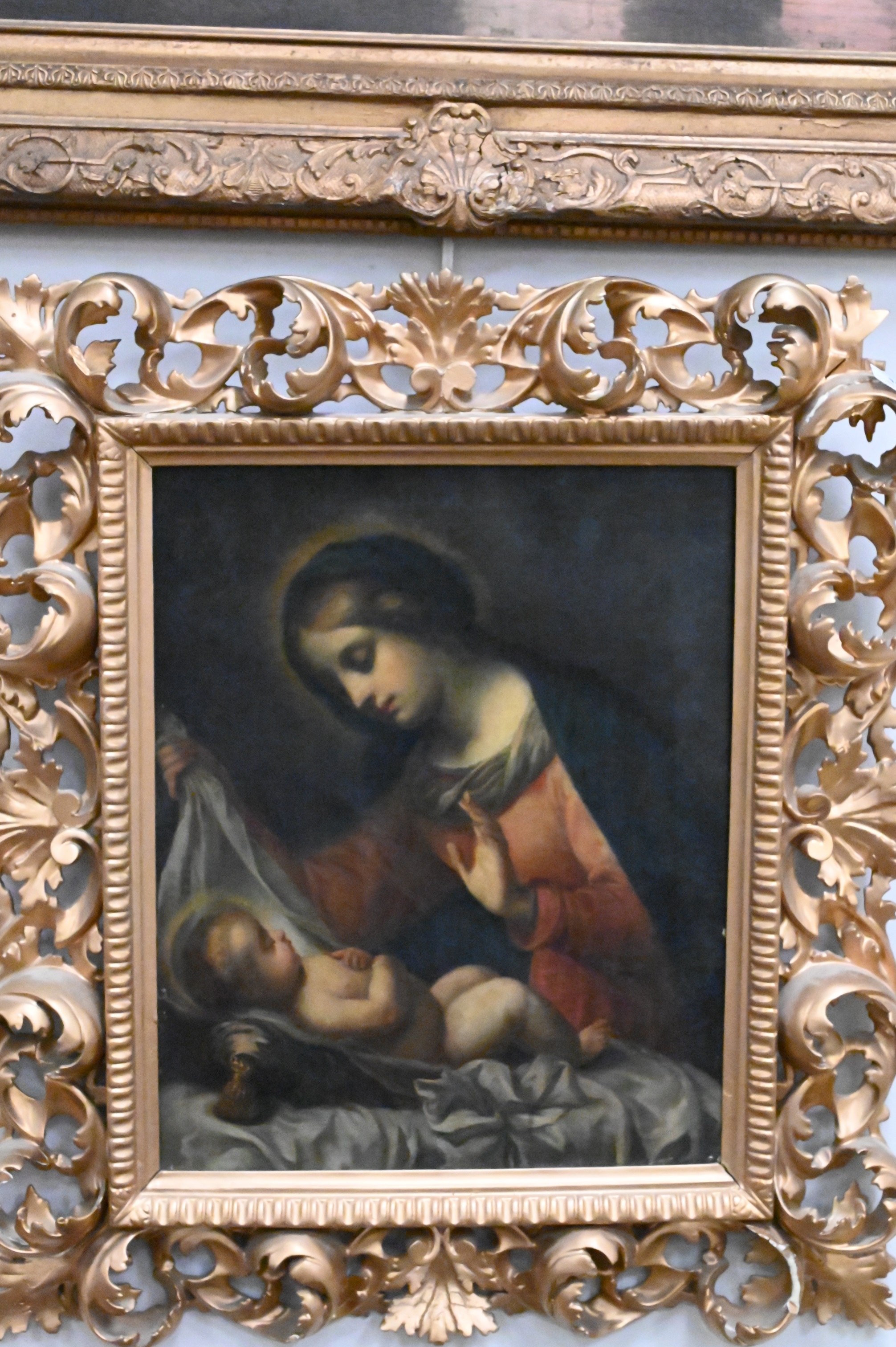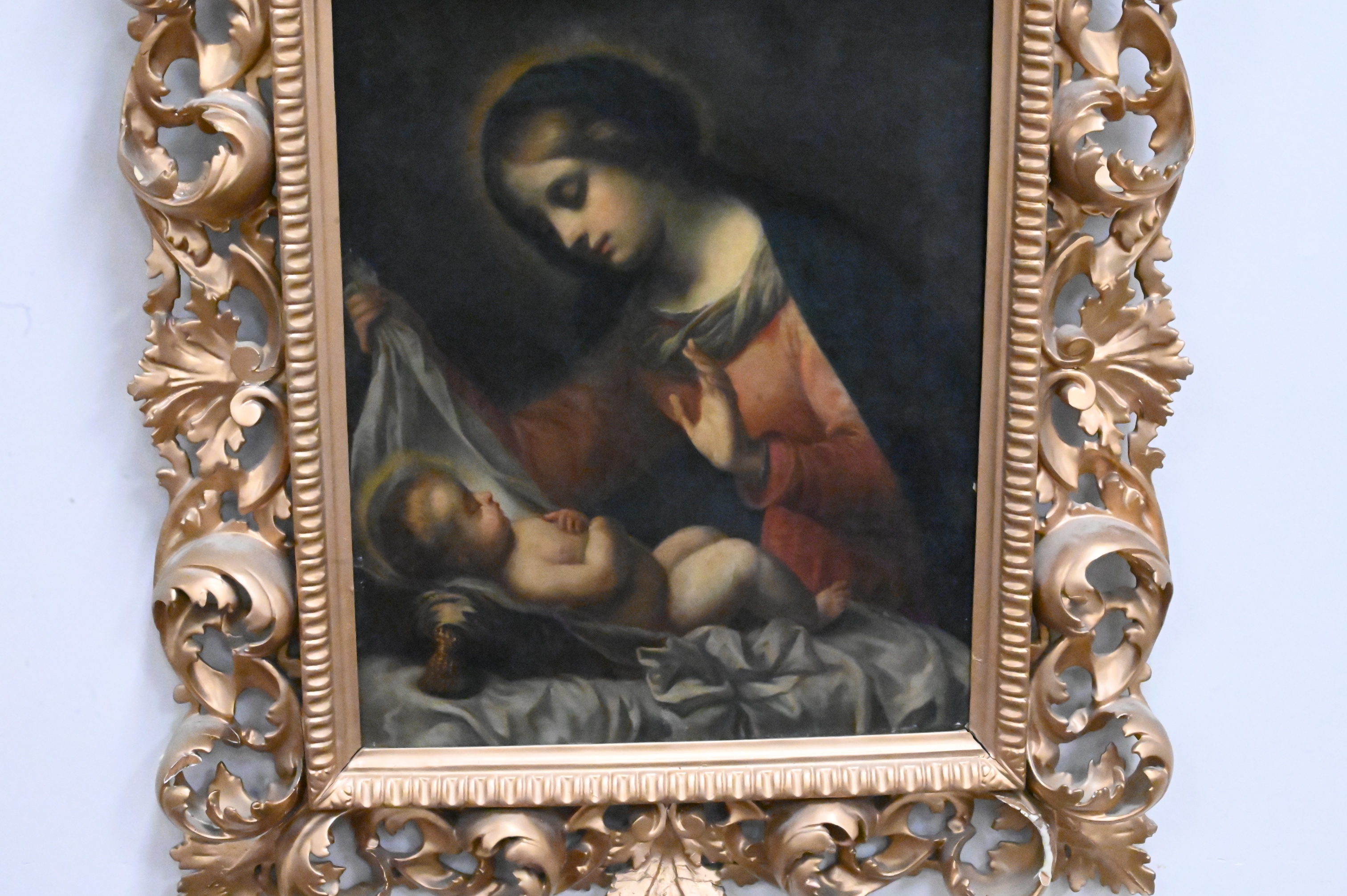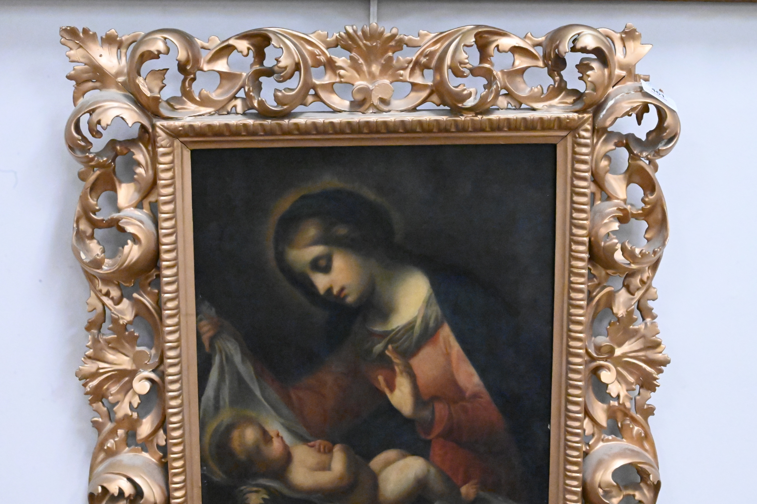 After Carlo Dolci, Madonna and Child, oil on canvas, Rome, copy by Ciaro?, 17″ x 13 1/2″.