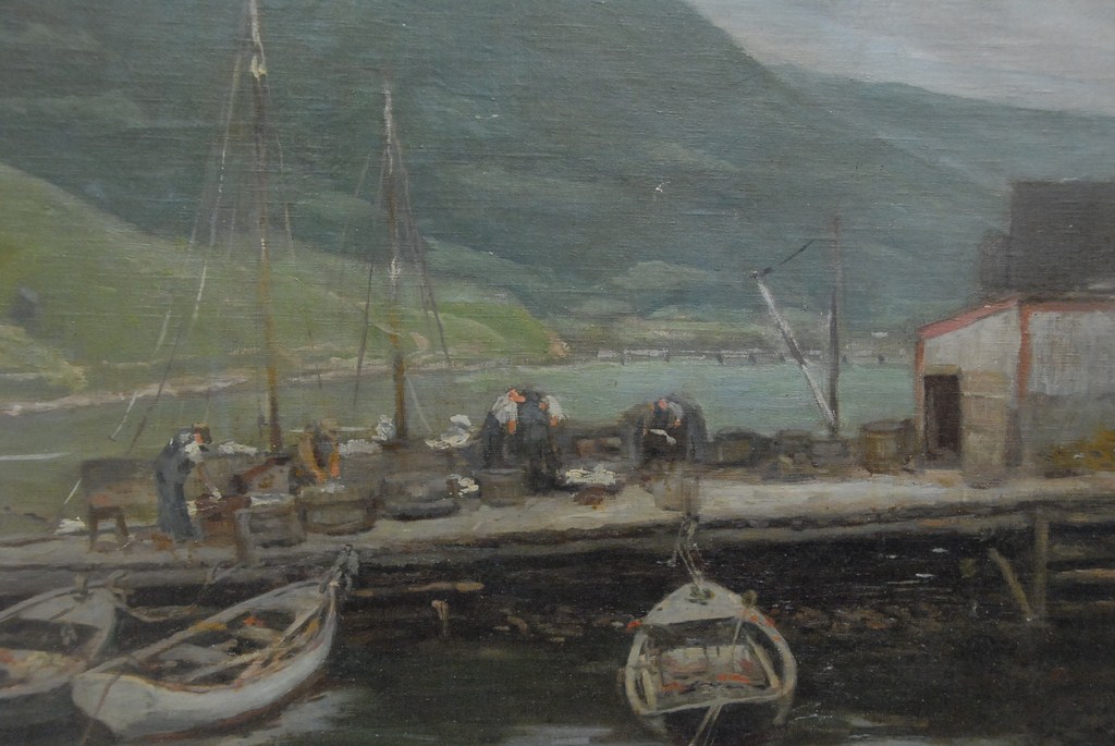 Attributed to Helen Savier Dumond 1872-1968 BOATS AT DOCK oil on canvas unsigned 19 1/2 x 23 1/4