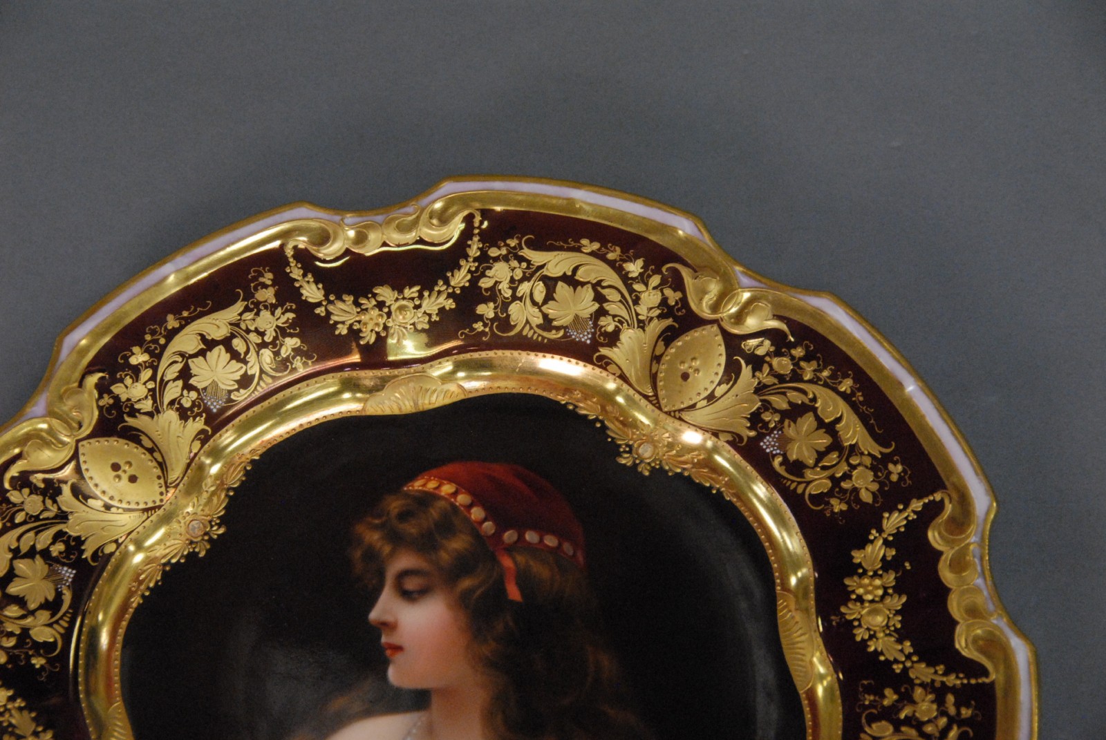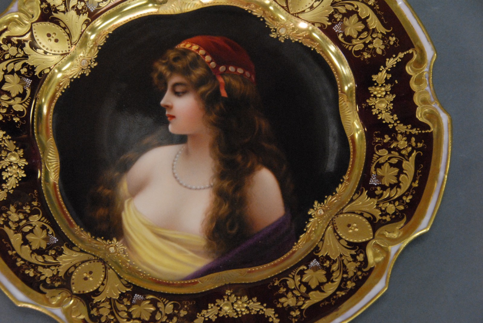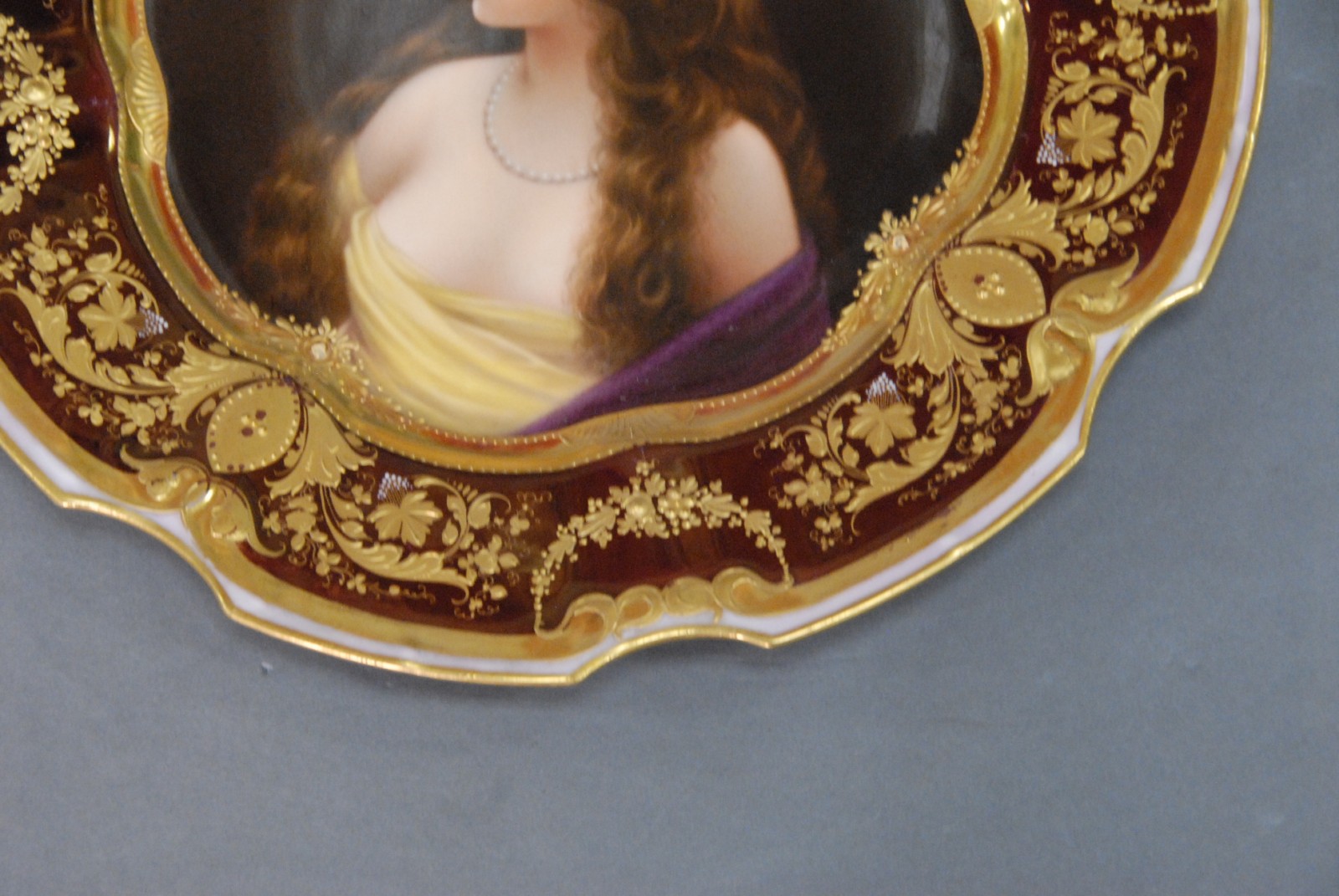Austrian porcelain portrait plate with raised gold relief signed Weigil.