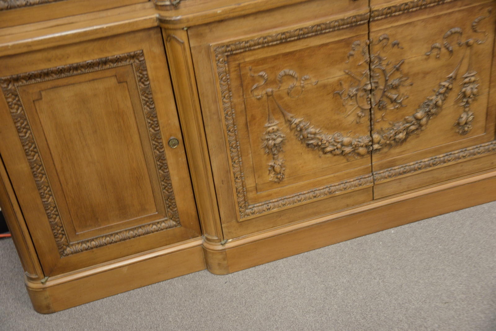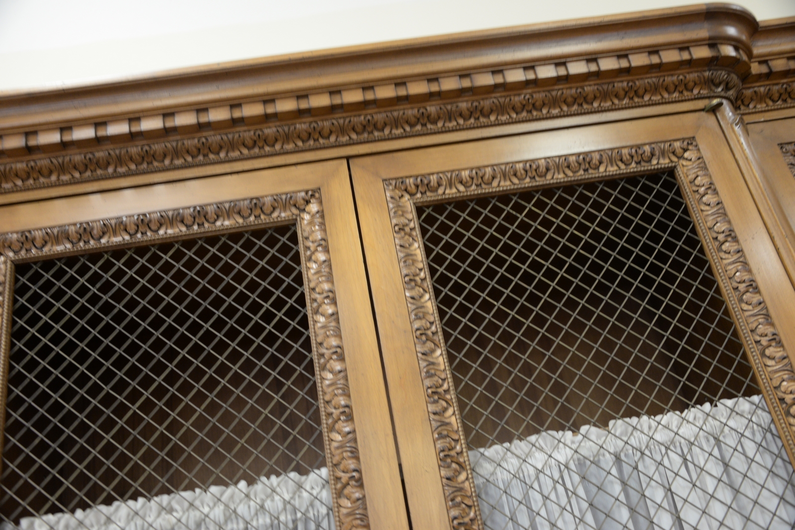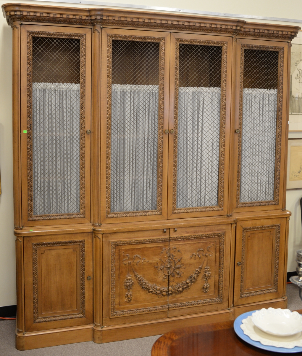 Lot 461: Continental breakfront in two parts, upper portion having four grill work doors on base with four doors. ht. 81in., wd. 85in., dp. 1…