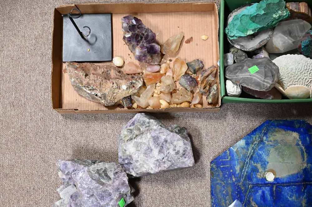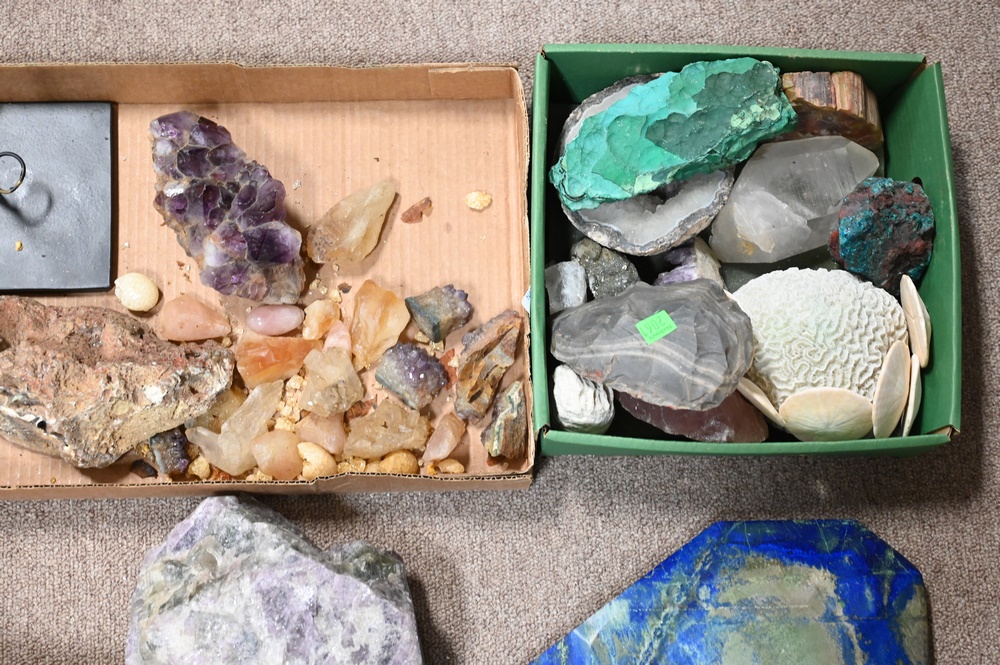 Group of Specimens, to include Malachite, Quartz, Fluorite, Coral, etc.
