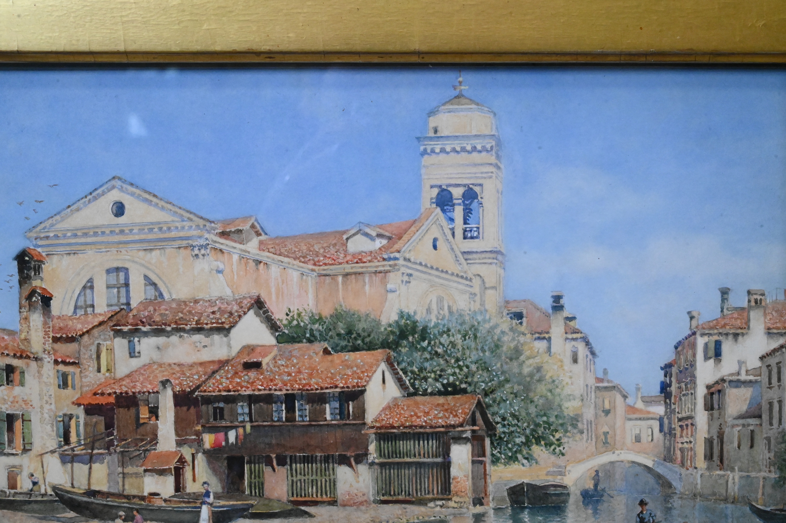 Watercolor and gouache on paper, in ornate giltwood frame