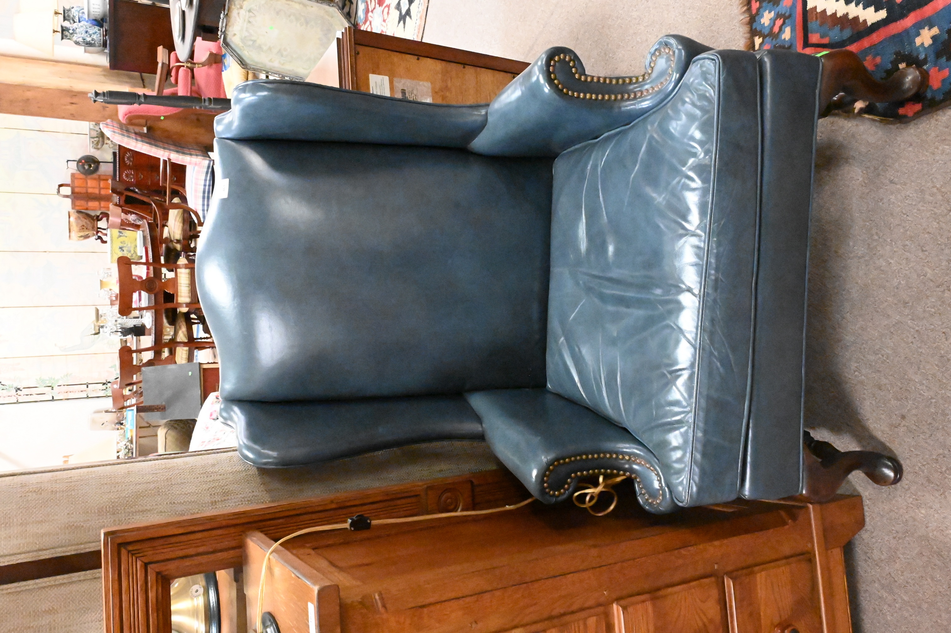 Lot 461: Hickory Chair Queen Anne Style Leather Wing Chair