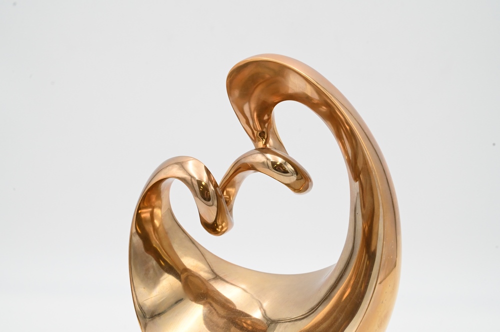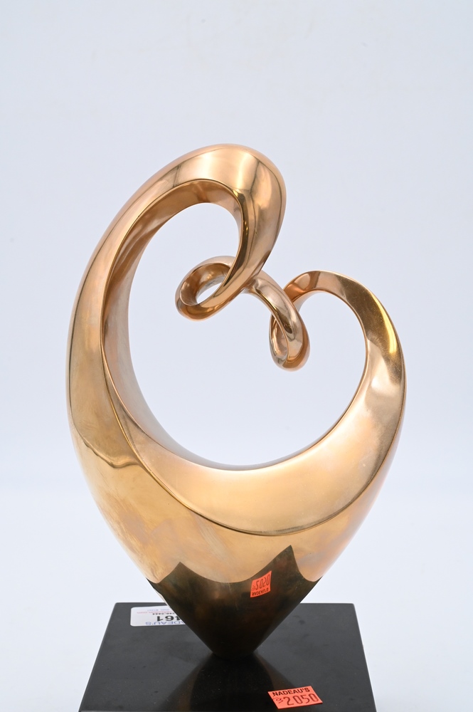 Lot 461: Kieff Antonio Grediaga (born, 1936), bronze abstract sculpture on stone base, untitled, signed lower center height of sculpture 9.5 inches height with base 11.5 inches.
