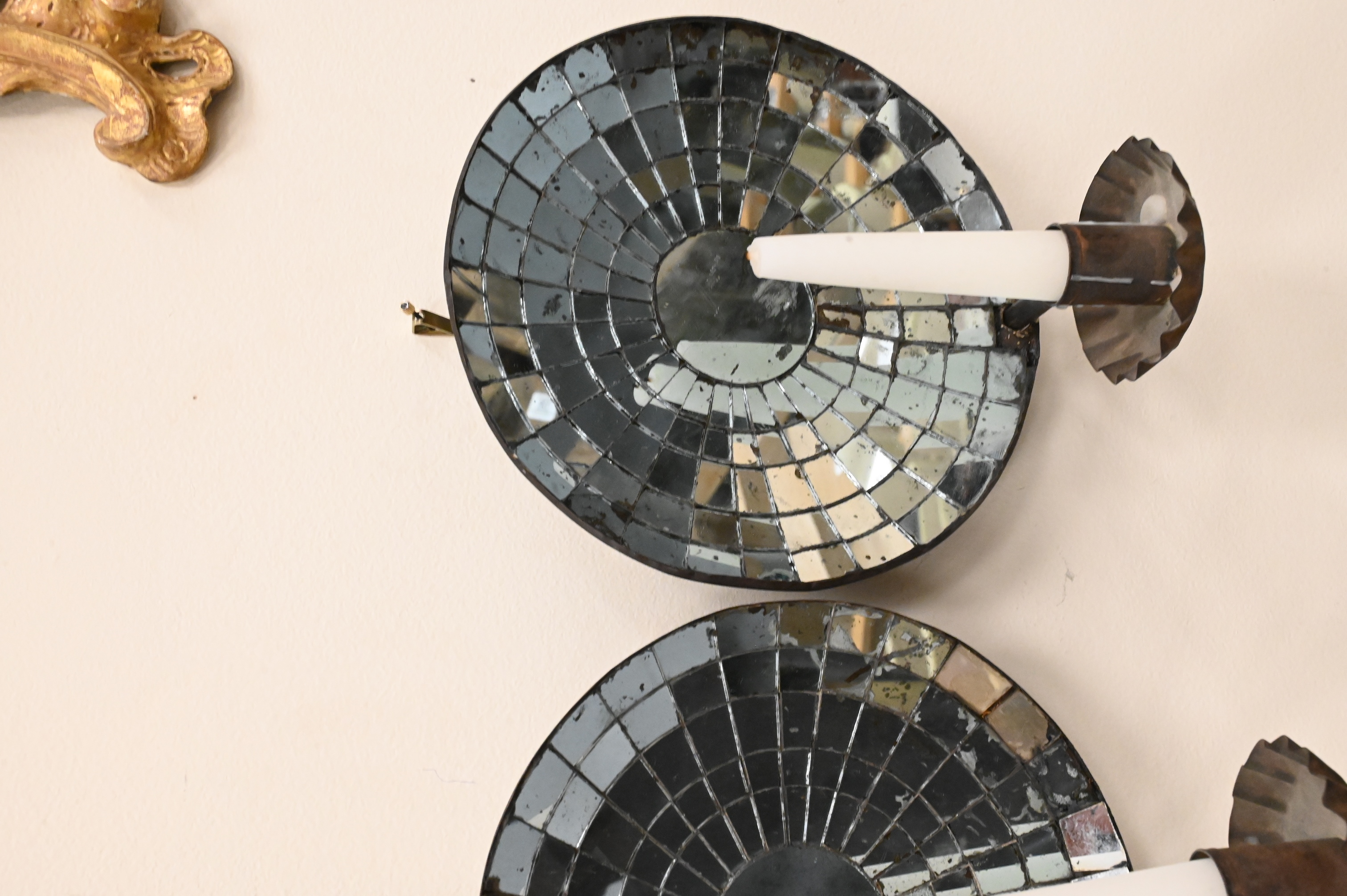 Lot 461: Pair of Colonial American Mirrored Wall Sconces