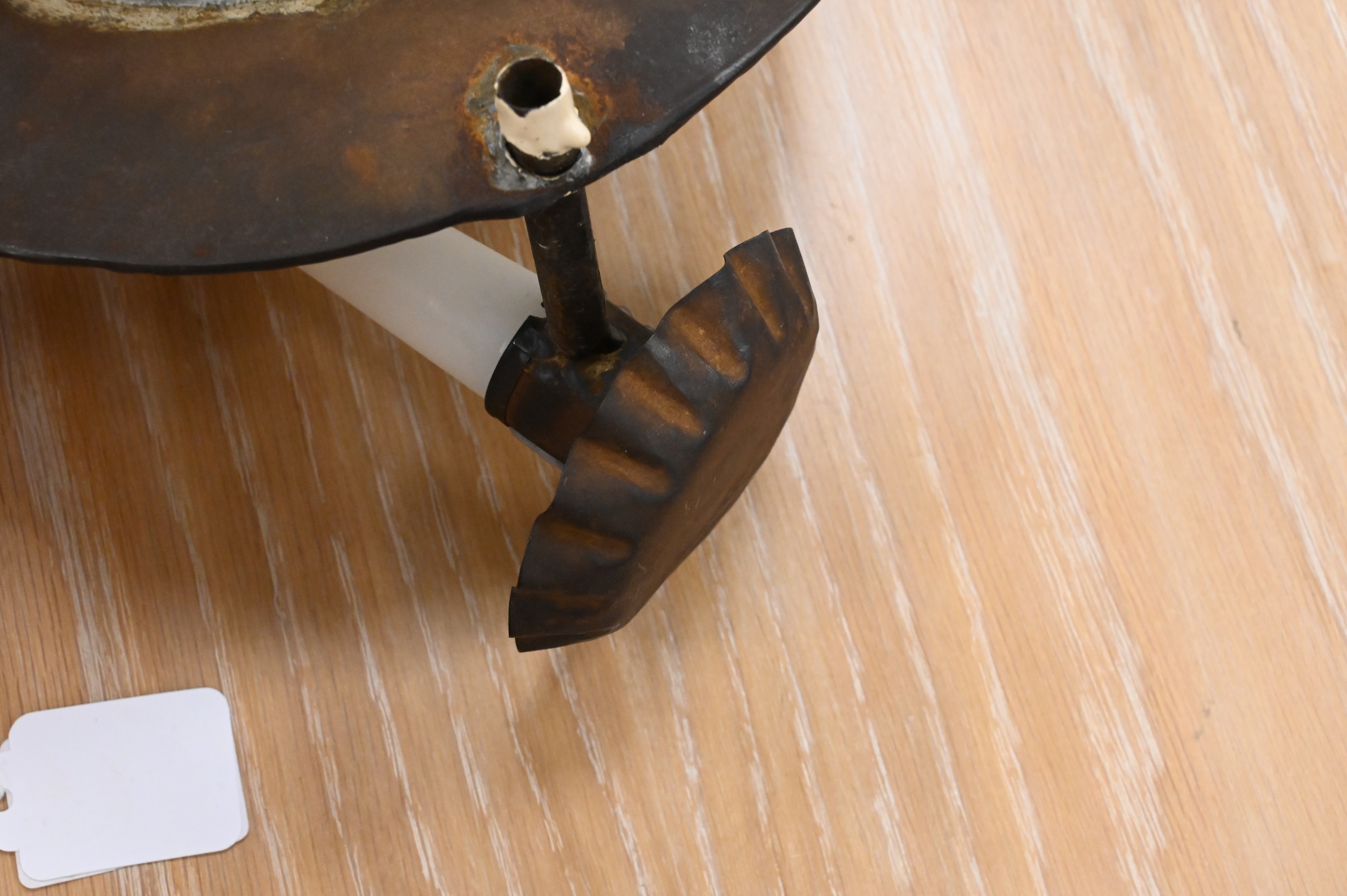 round spiderweb style glass work and tin body with pie crust candle holder, circa 19th century
