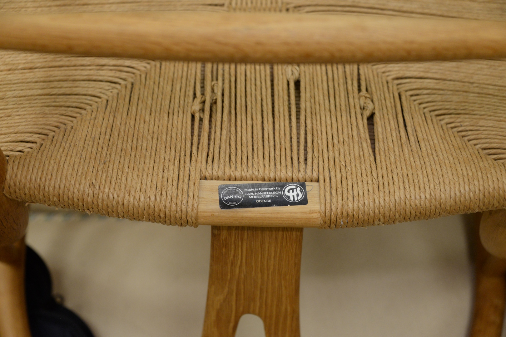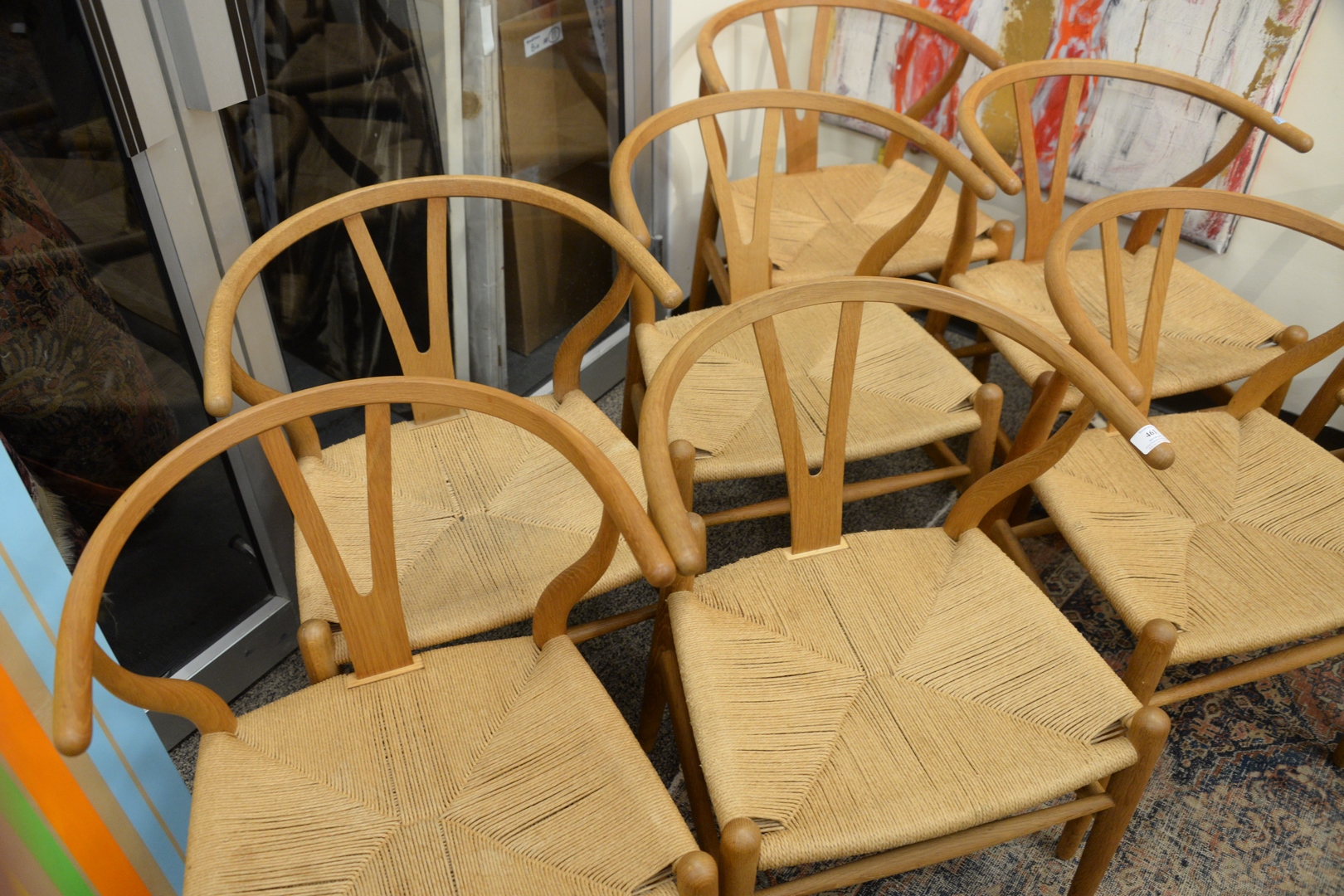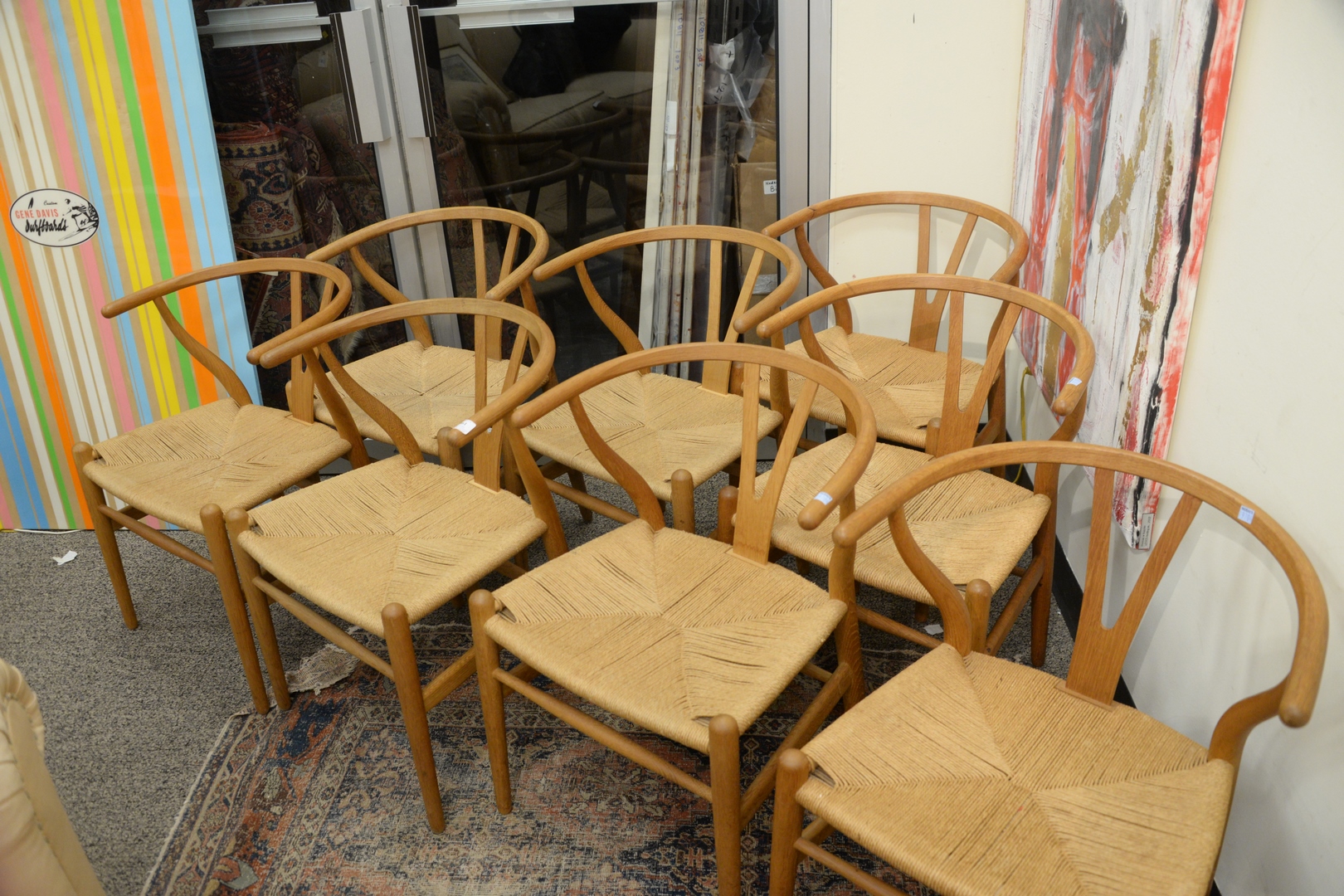 Lot 461: Set of Eight Carl Hansen Wishbone Armchairs, marked Carl Hansen, after Hans Wagner, height 27 1/2 inches.