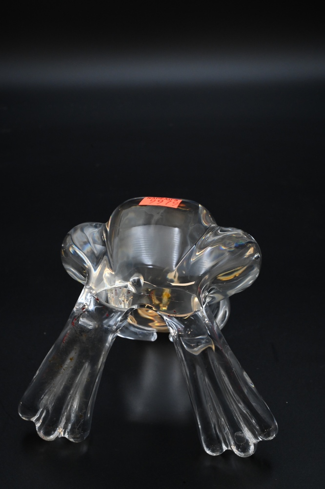 Lot 461: Steuben Glass, Frog Prince figure, having 18 karat gold crown, designed by Lloyd Atkins, 1973, signed Steuben on bottom, in fitted b…