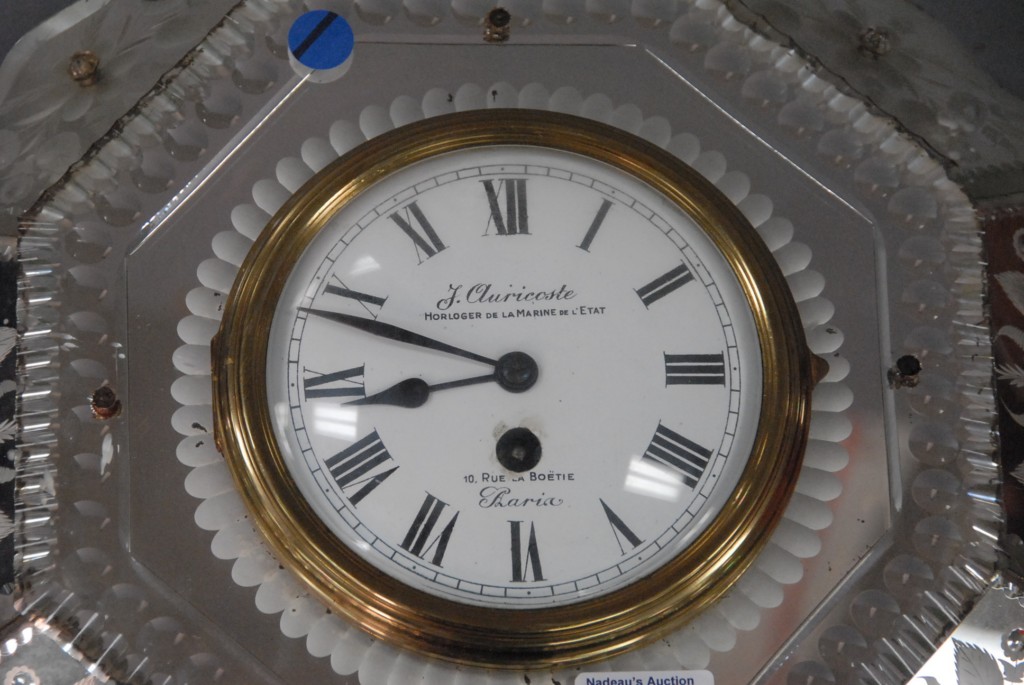 Venetian type mirror clock F. Duriscoste, late 19th century.diameter 17in.