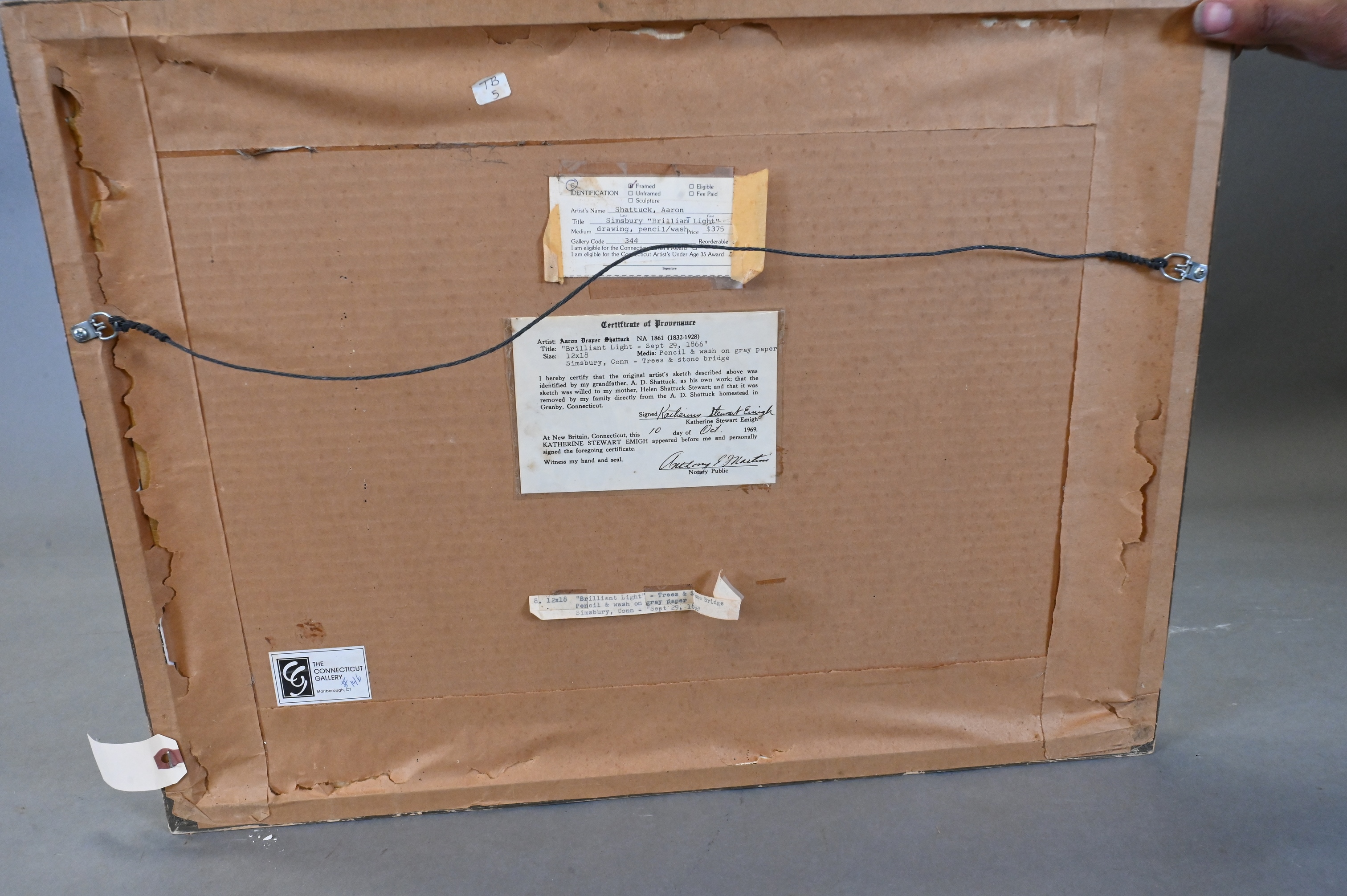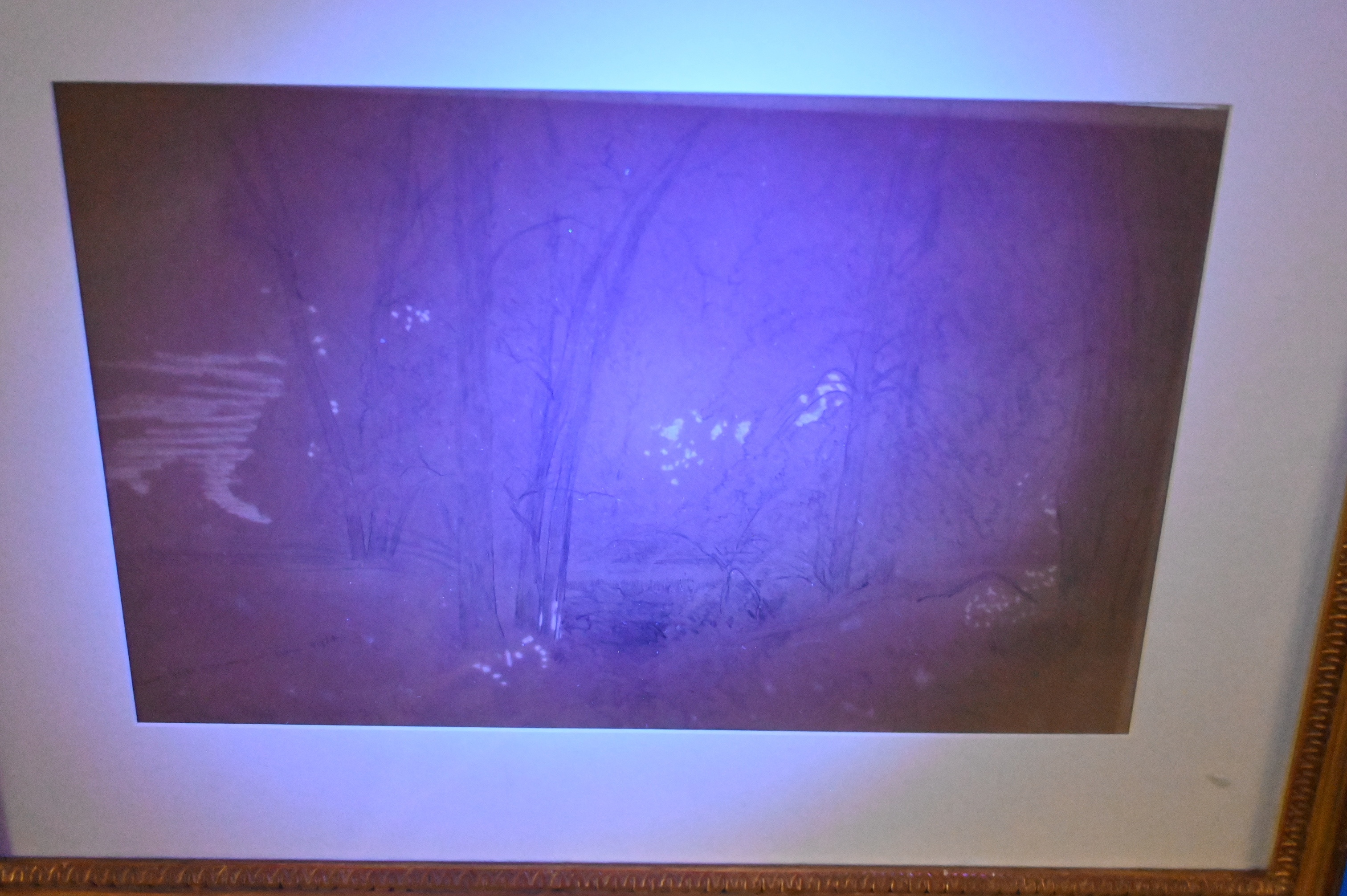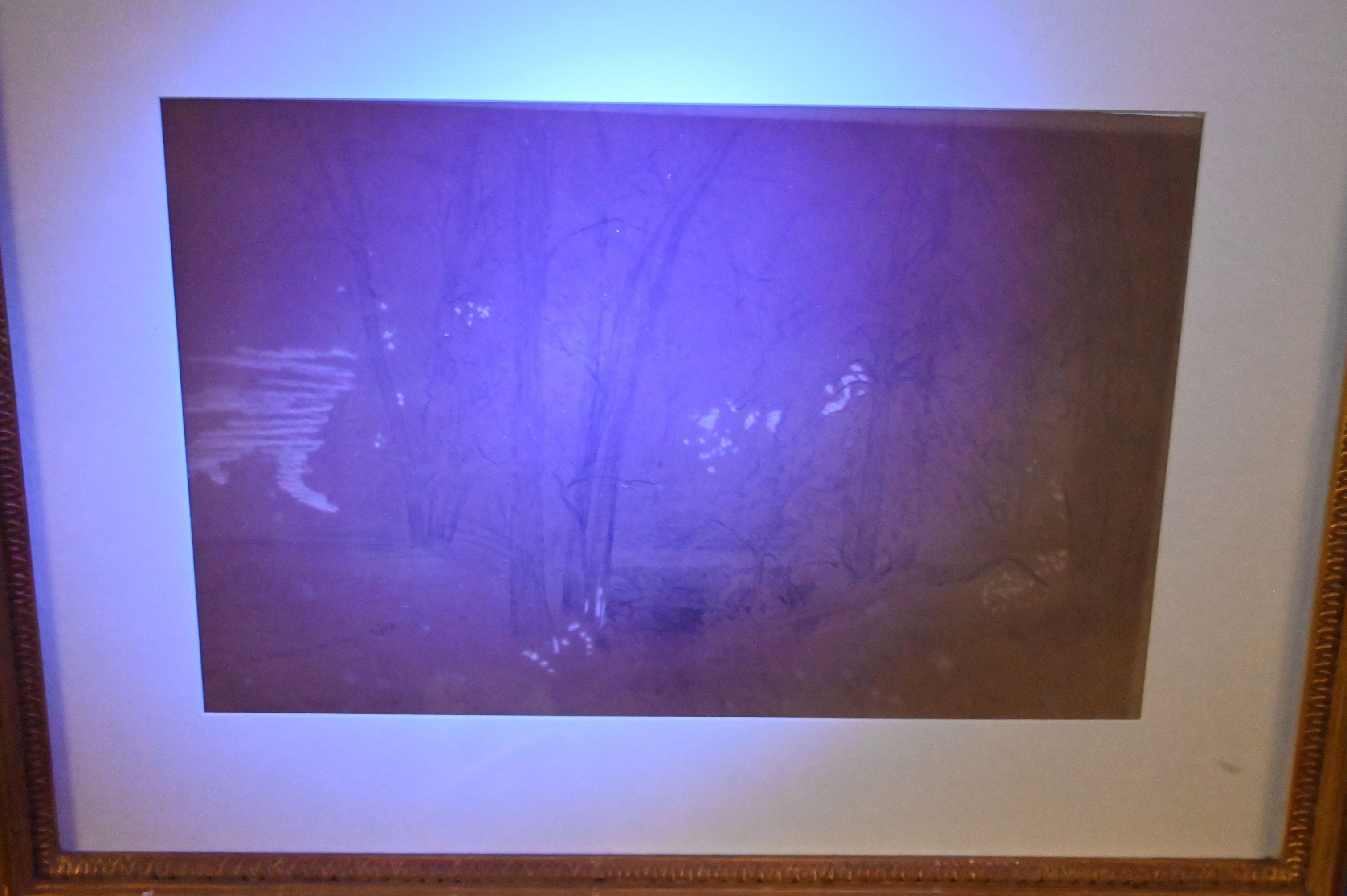 Condition: loose in frame, some acid burn from the matting, tear lower right, some creasing