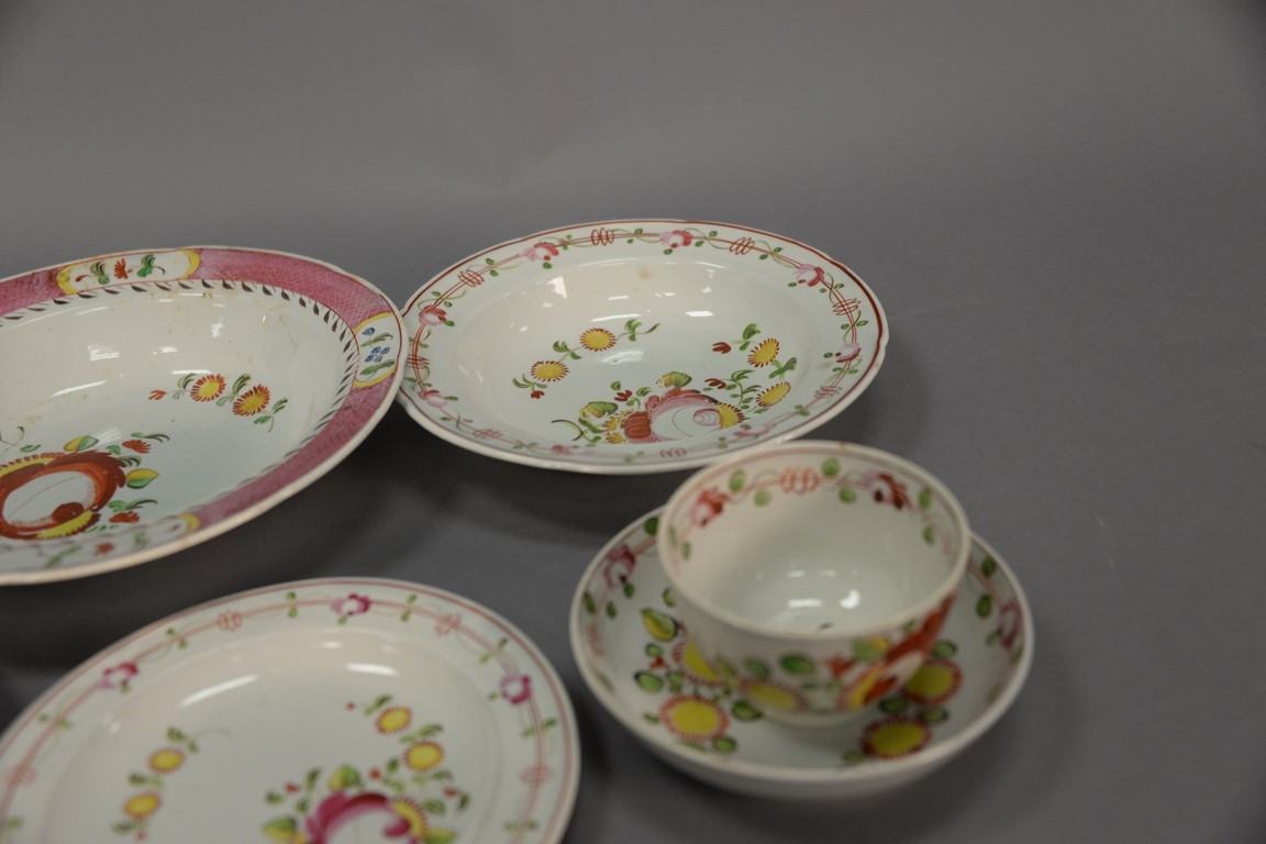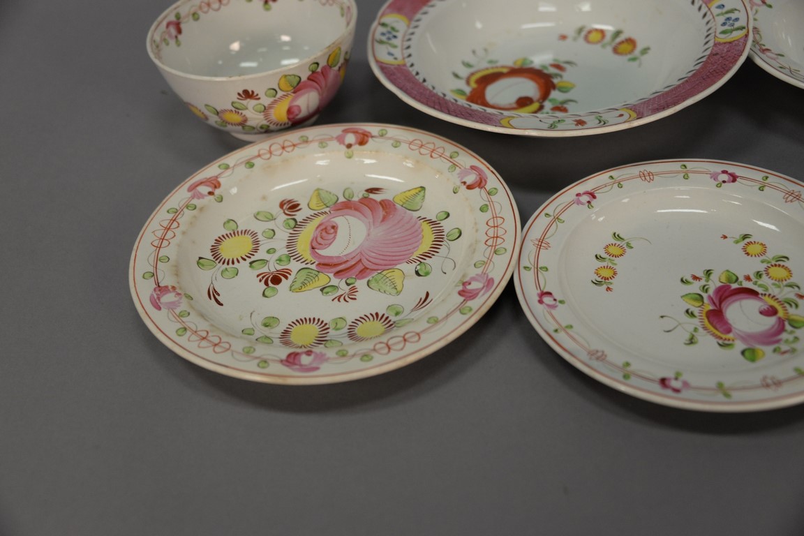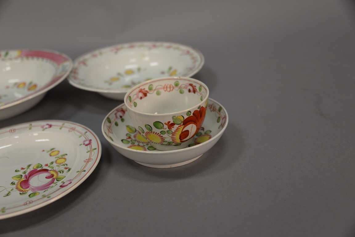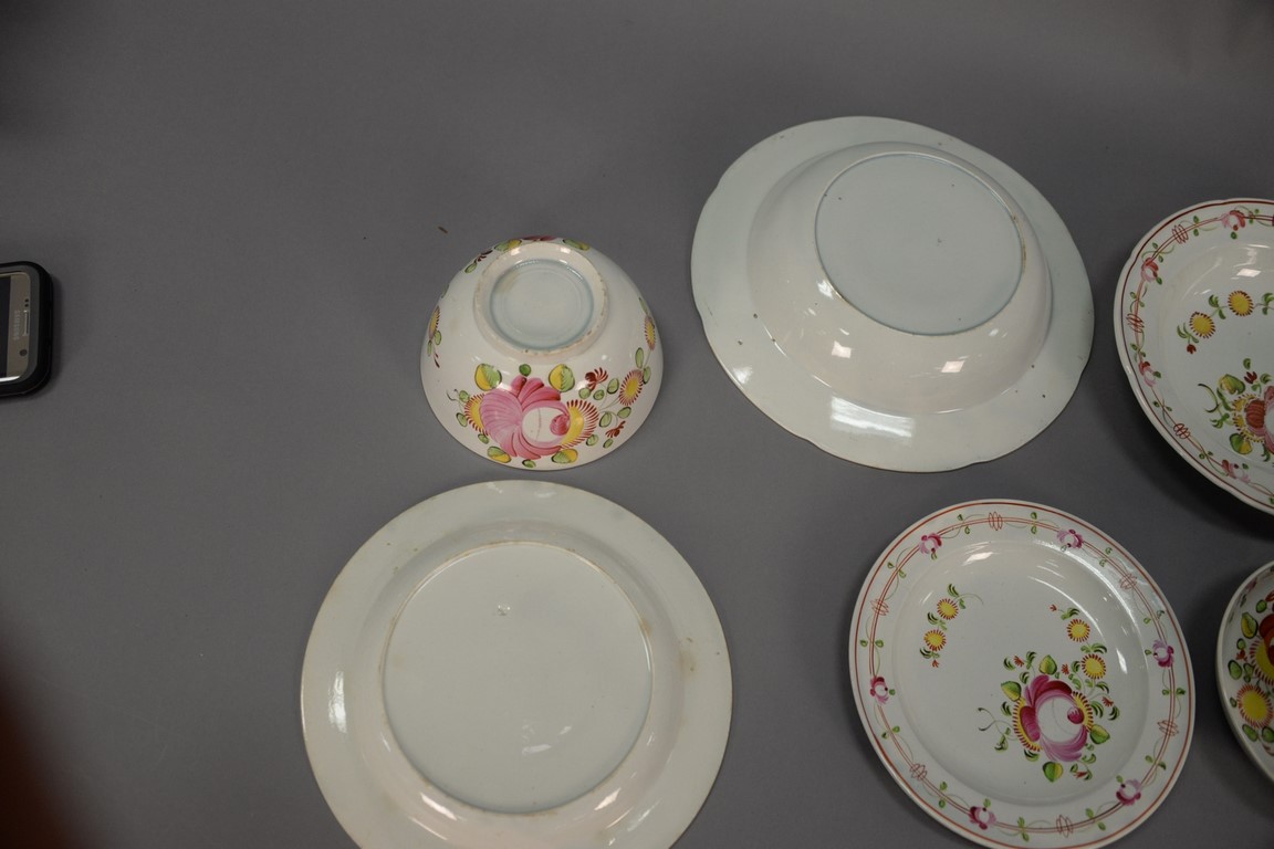 Eighty piece lot of 19th century floral decorated soft paste to include dinner plates, luncheon plates, bowls, dishes, cups, and small plates, circa 1840. dinner plates: dia. 10in. Provenance: Property from the Francis Du Pont Collection drawn from a home in Farmington, CT