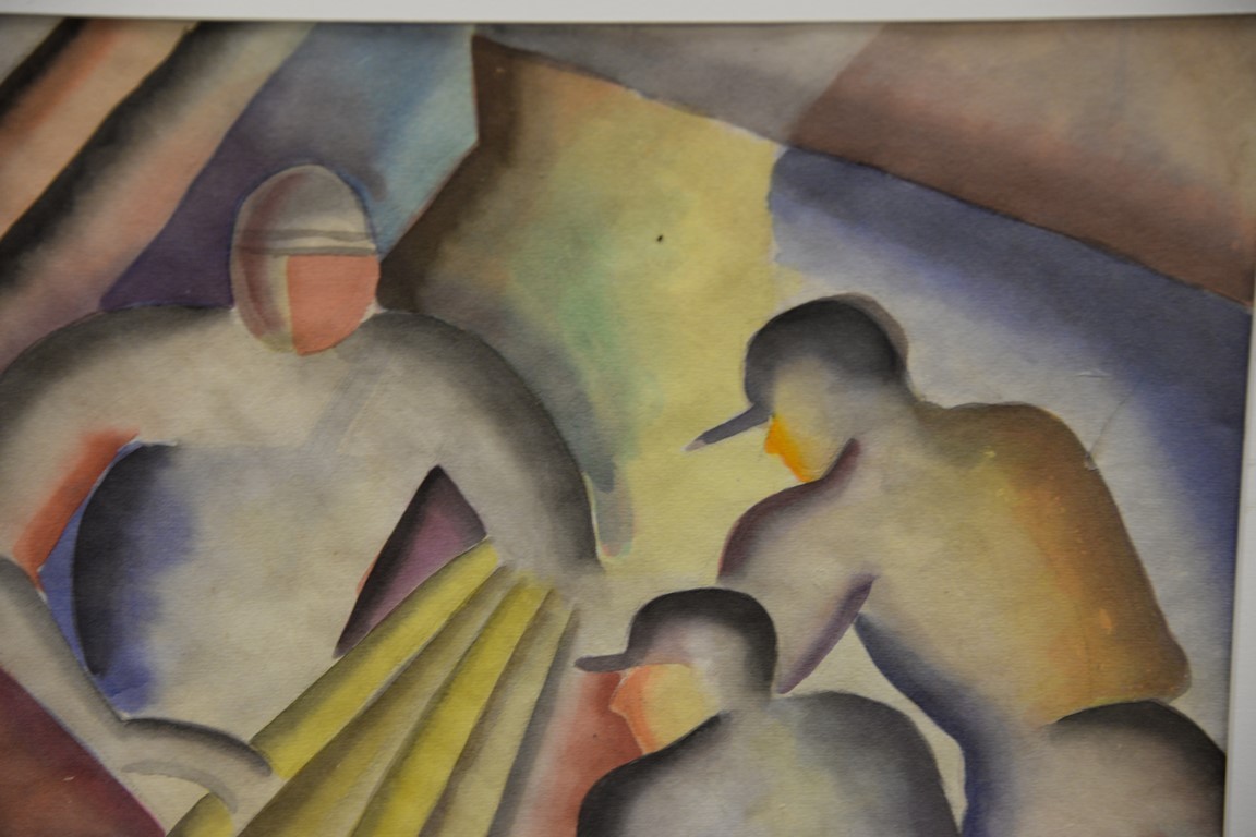 Four framed pieces to include an oil on canvas abstract signed illegibly, and three watercolors signed Harry Clark Sterling. 19 x 13 to 29 3/4 x 39 1/2 Provenance: Estate of Arthur C. Pinto, MD