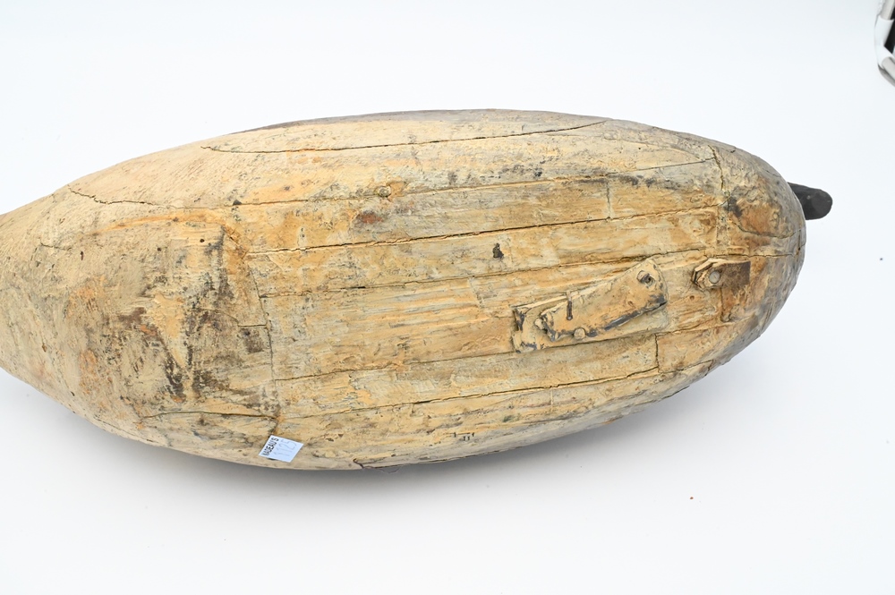 Lot 462: Goose Decoy, in old paint, height 11 inches, length 23 inches. Provenance: Estate of Florence Yannios, Cheshire, CT.