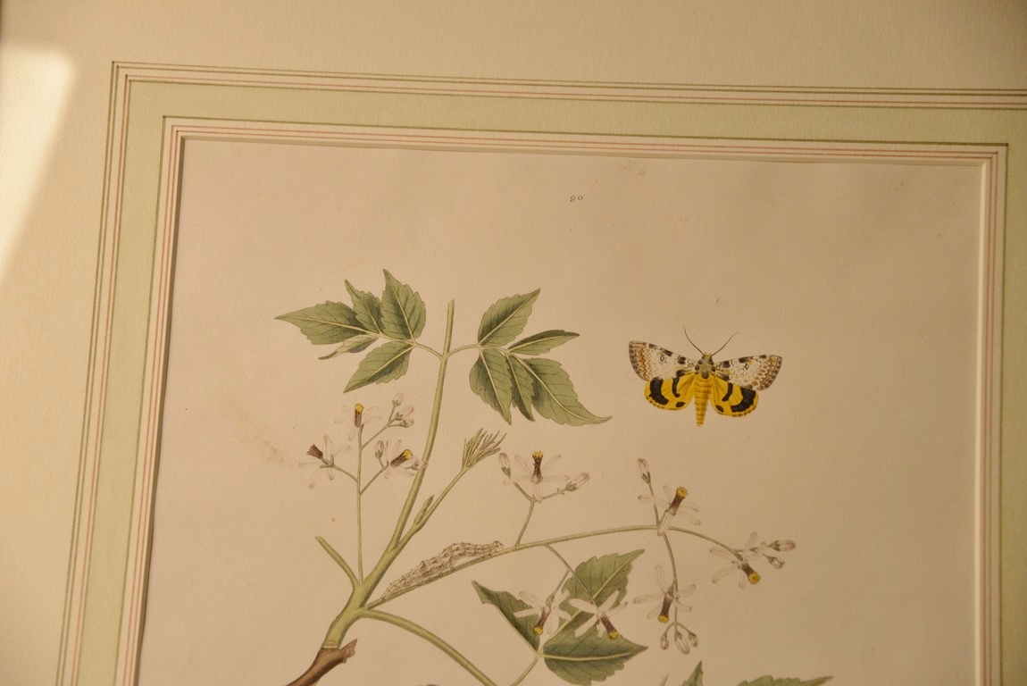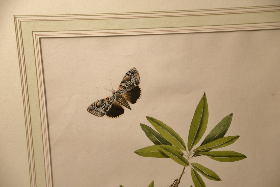 John Abbot 1751-1839 pair of hand colored aquatint engravings Phalaena Amasia, Yellow Underwing Moth Plate #90 and Phalaena Vidua, Black Underwing Moth Plate #91 From The Natural History of the Rarer Lepidoterous Insects of Georgia Published by James Edward Smith 1759-1828 framed and matted by W. Graham Arader III sight size: 14 x 11 Provenance: Property from Credit Suisse’s Americana Collection