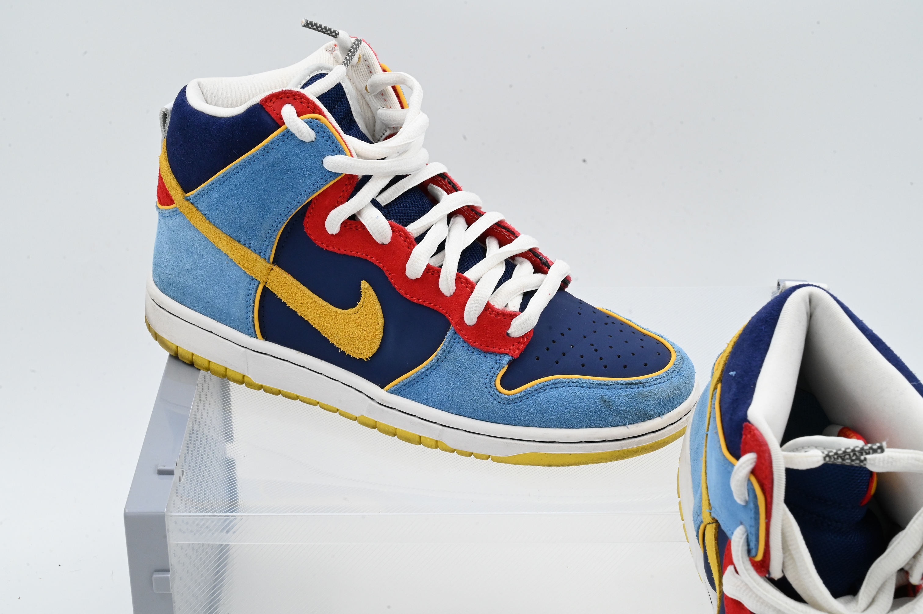 Men’s Nike Sneakers SB Dunk High Pacman in Red, Blue, Yellow, and White