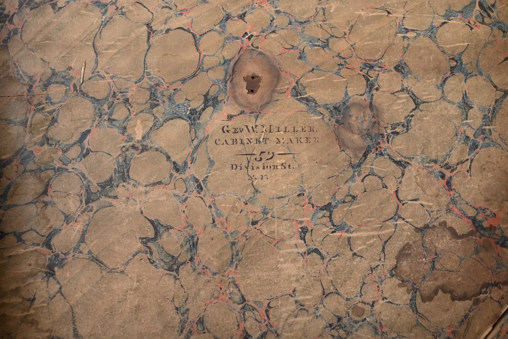 with original label “George W. Miller, cabinet maker, 59 Division St. N.Y.”