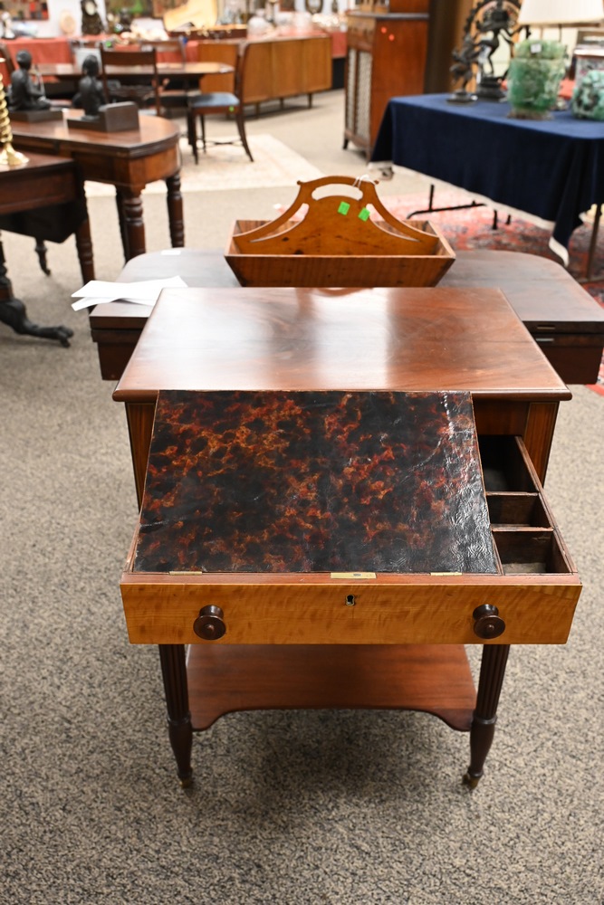 Lot 462I: Walsh and Egerton Signed Sheraton Mahogany Two Drawer Work Table